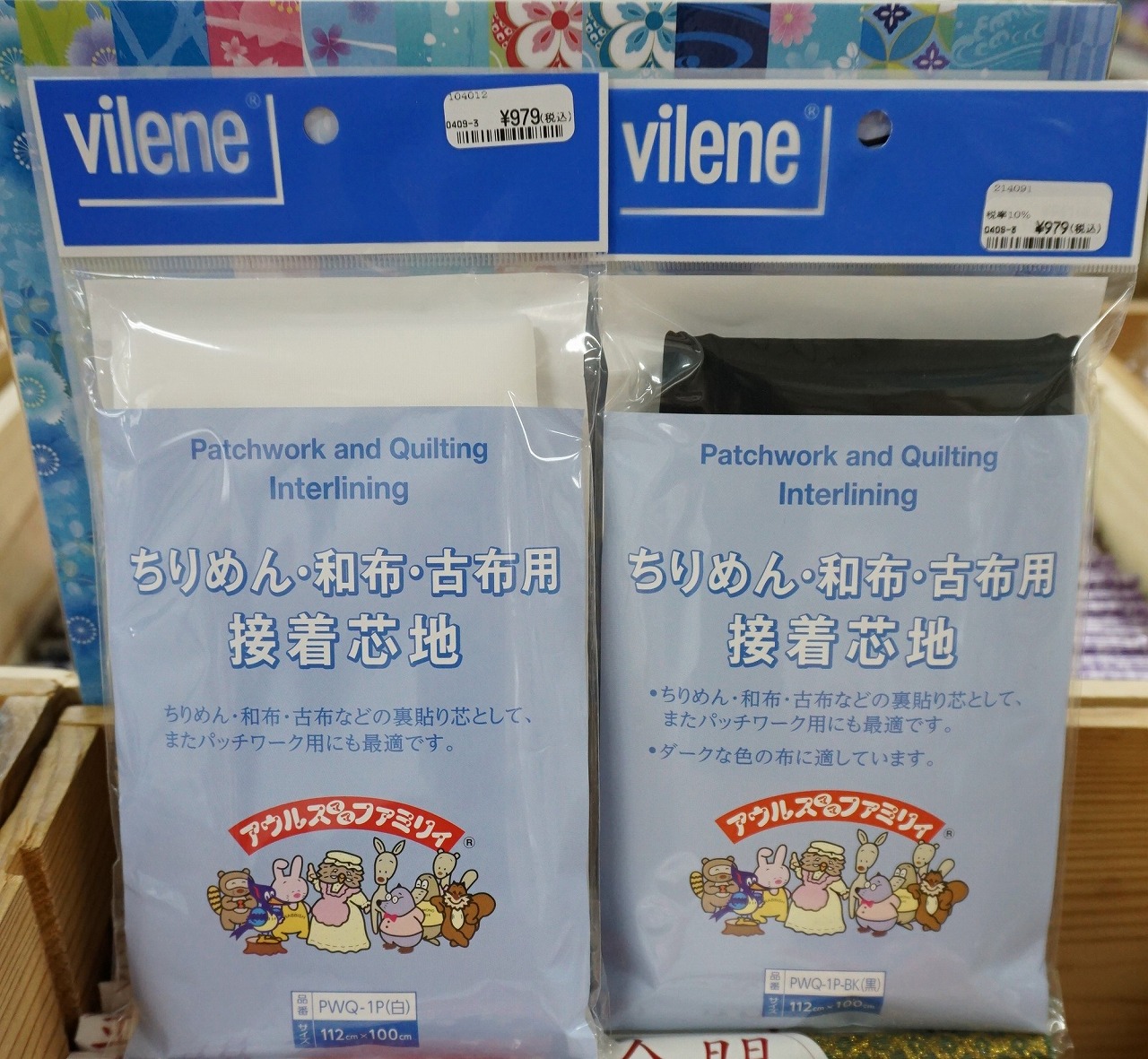 ちりめん・和布・古布用接着芯地」というものは、少々弱々しい生地や、薄くなってしまった古布の裏貼り芯として最適です。ちりめんに接着しても、特有の「しぼ」がつぶれにくいので1袋あると便利です♪