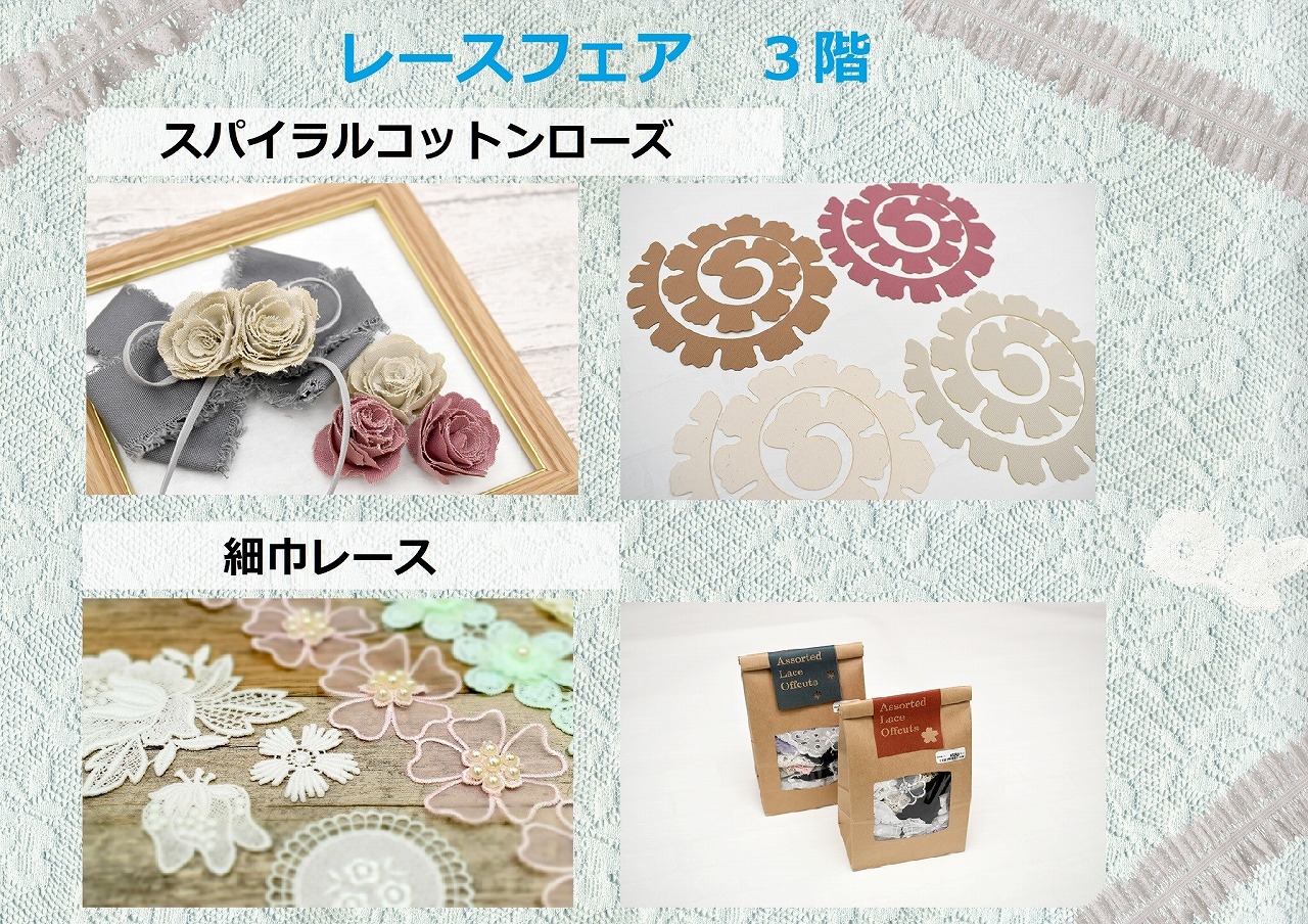 終了致しました。フェア終了後も各階でレース生地や細巾レース、レース糸等取り扱っております。