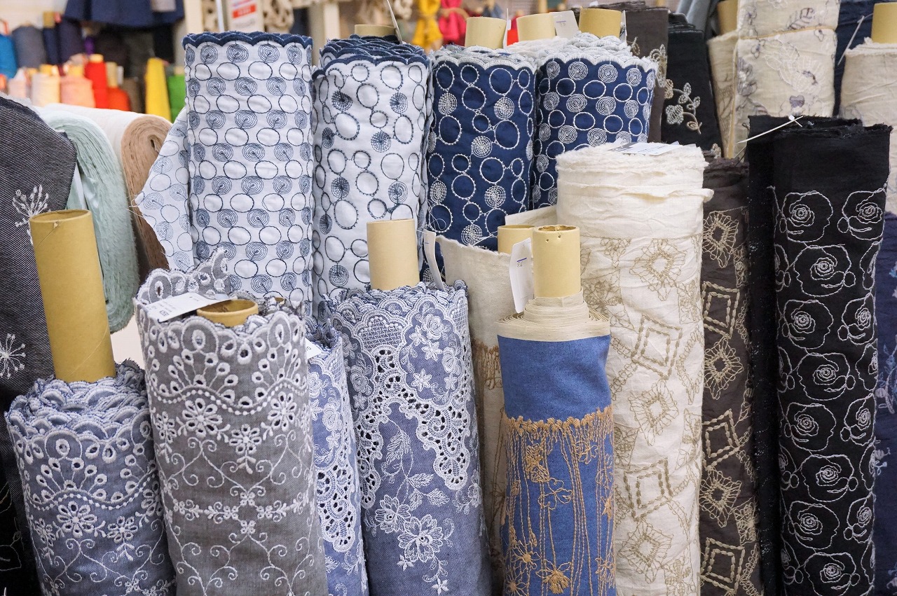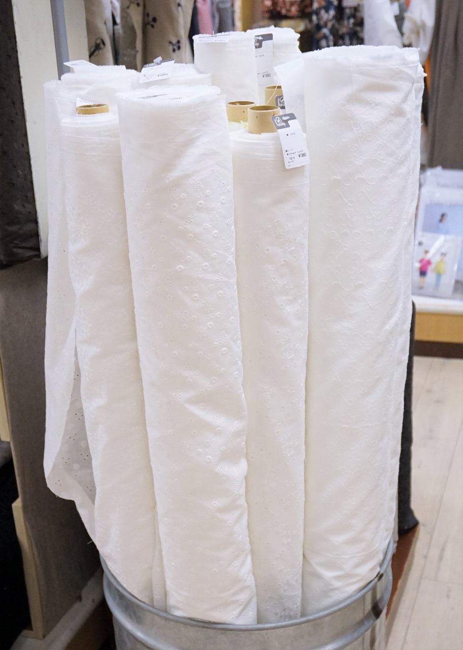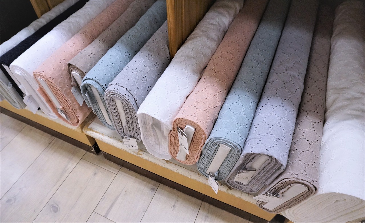 見た目もオシャレで涼し気、綿100%の扱いやすいレースが本店1階には豊富です。