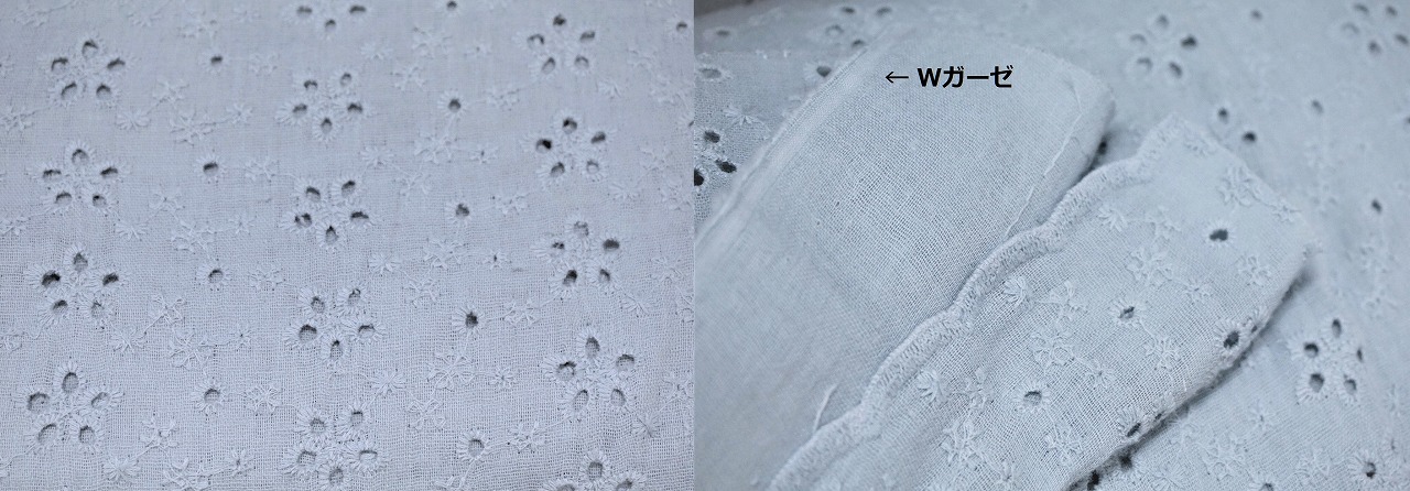 | ダブルガーゼレースはガーゼの持つ肌触りのよさとレースの持つ美しさでお洋服からハンカチやストール等に使いやすい。 同じダブルガーゼレースのなかでも衣類や高級感を感じて頂けるのがコードレース。 |