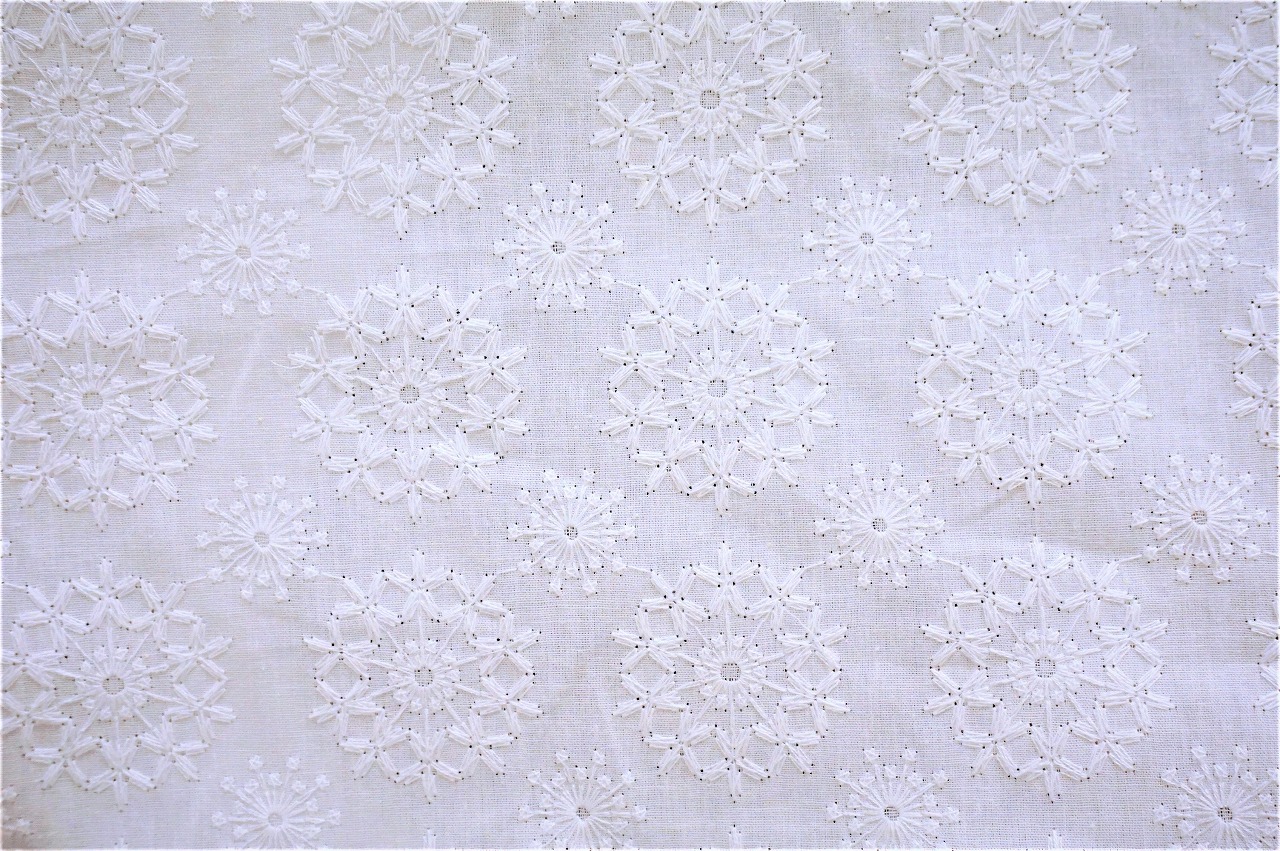 白地に刺しゅうの定番レース。見た目も涼し気で毎年人気!!今はマスクも必要なので、ブラウスやワンピースの余り生地でマスクを作ってコーディネートしてもオシャレです。