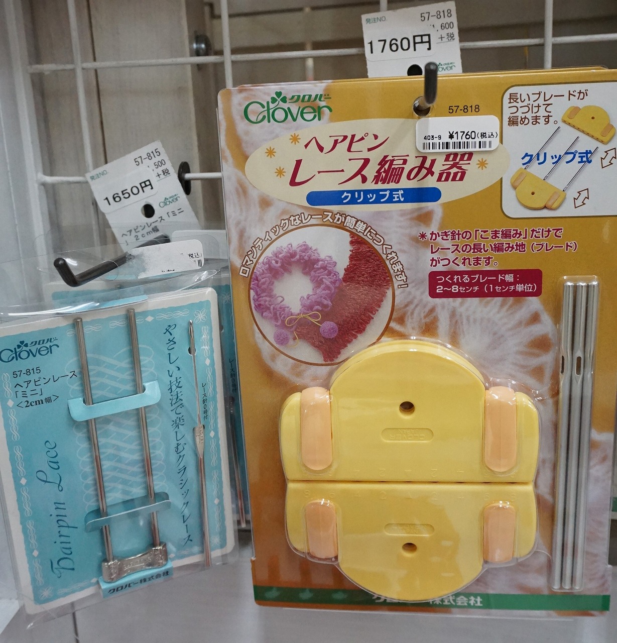 全てクロバー製のアイテムで「レース針」・「ペンーE」・「タティング用シャトル」・「ヘアピンレース編み器」・「花あみルーム『ミニ」」の製品紹介です。