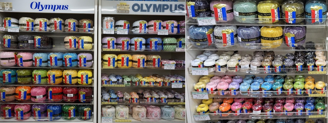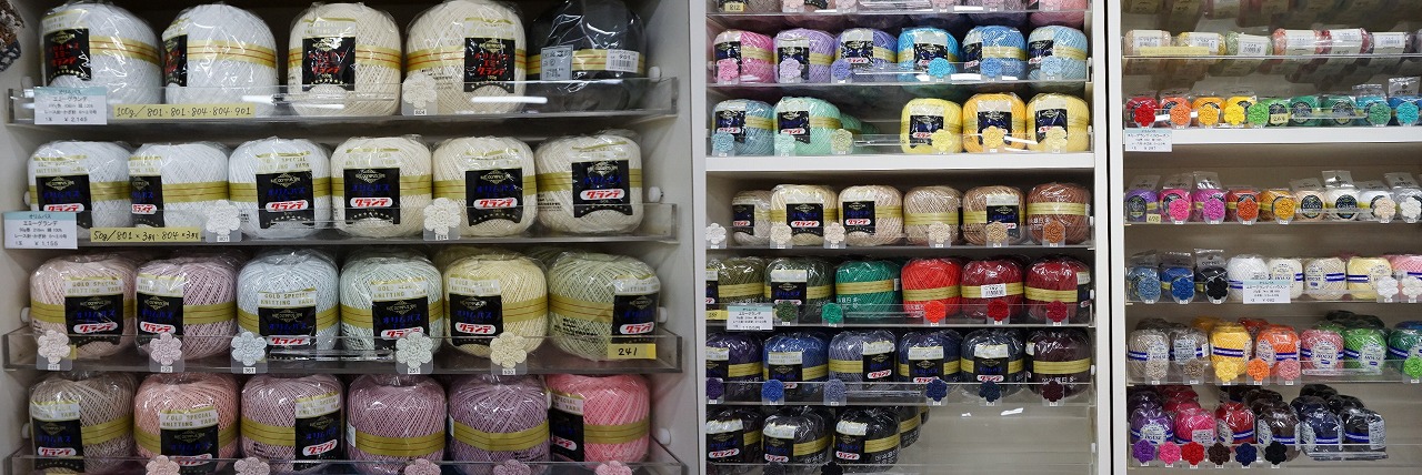 4階ではレース糸シリーズが豊富に揃っています。合わせましてレースを編むのに使われるレース針・タティング用シャトル・お気軽に使える編み器などがございます。