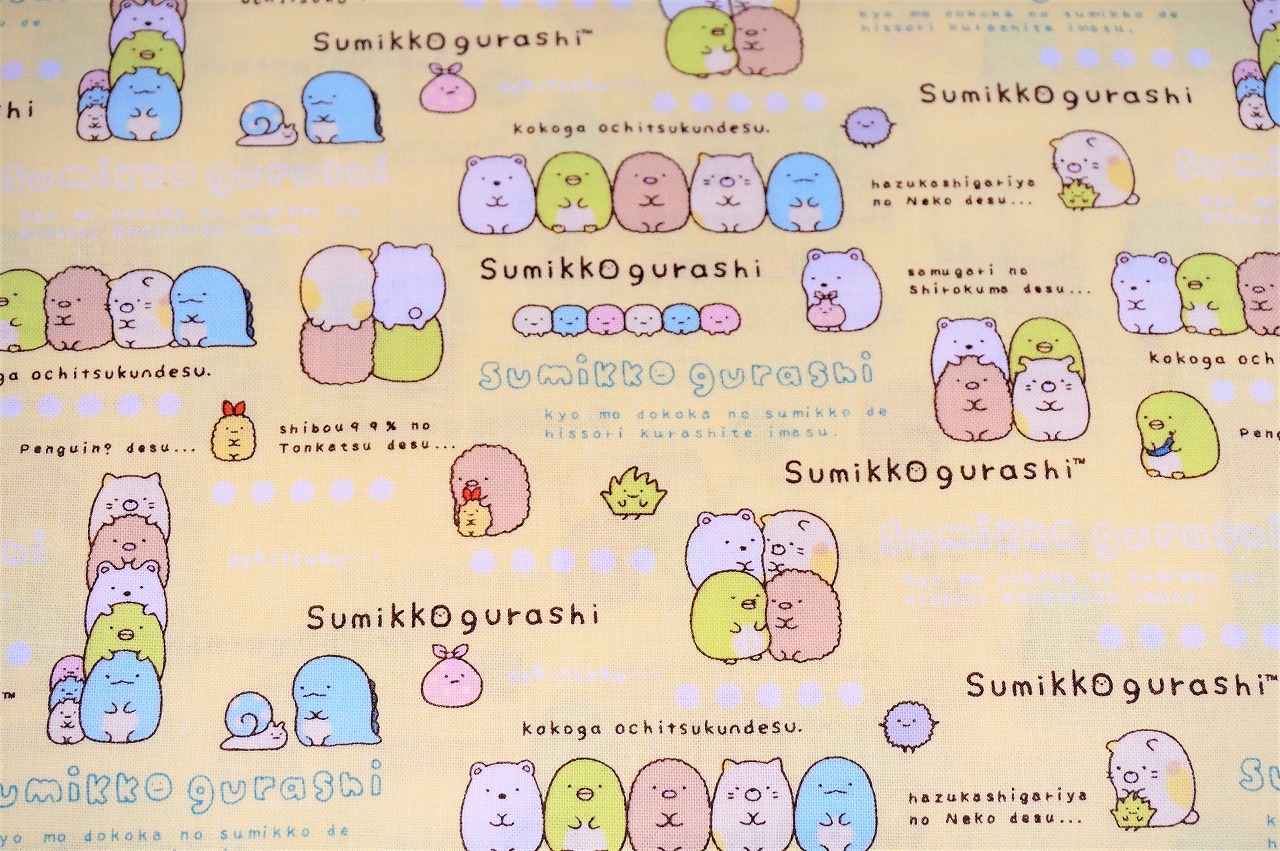 仲良く寄せ合って並んだすみっコがキュートな生地です♪