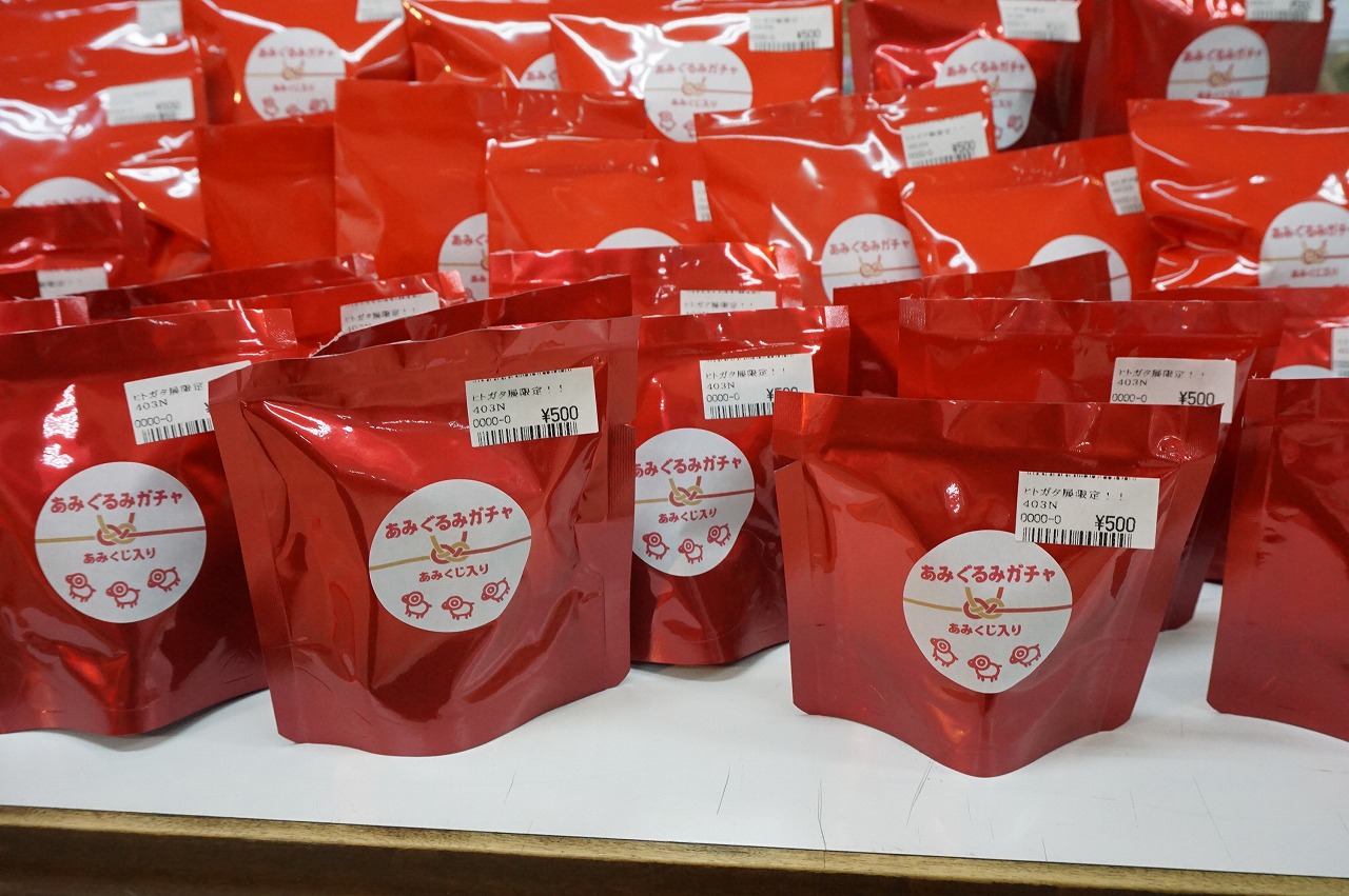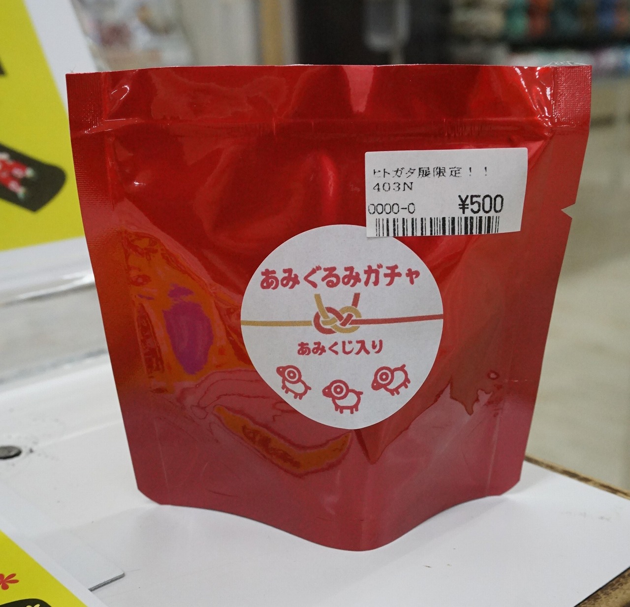 そして、あみぐるみのイベントと言えば「あみぐるみガチャ」ですが、今回のイベントではガチャガチャは登場致しませんが、中が見えない赤パッケージの中にあみぐるみが入った「パッケージ版500円ガチャ」を期間中ご用意致しております。