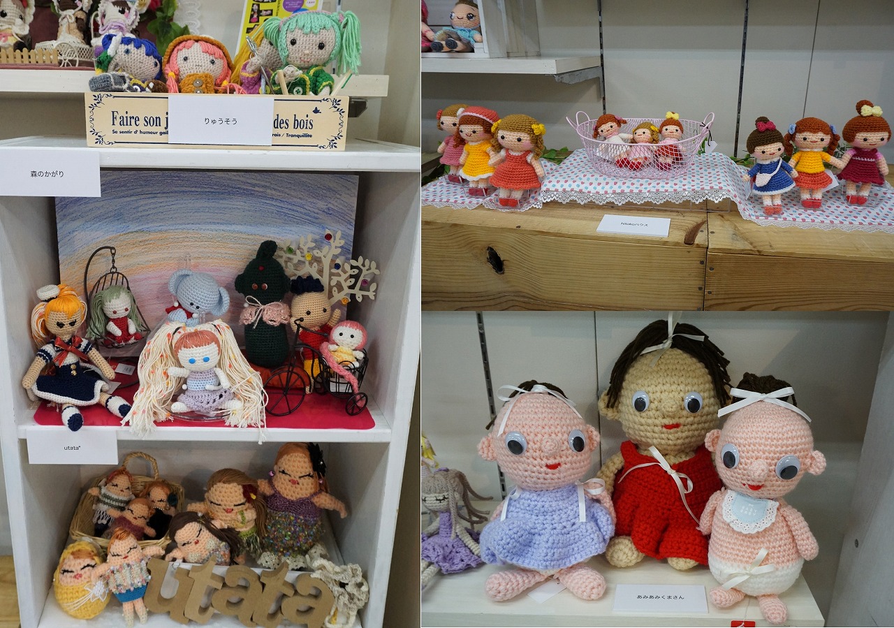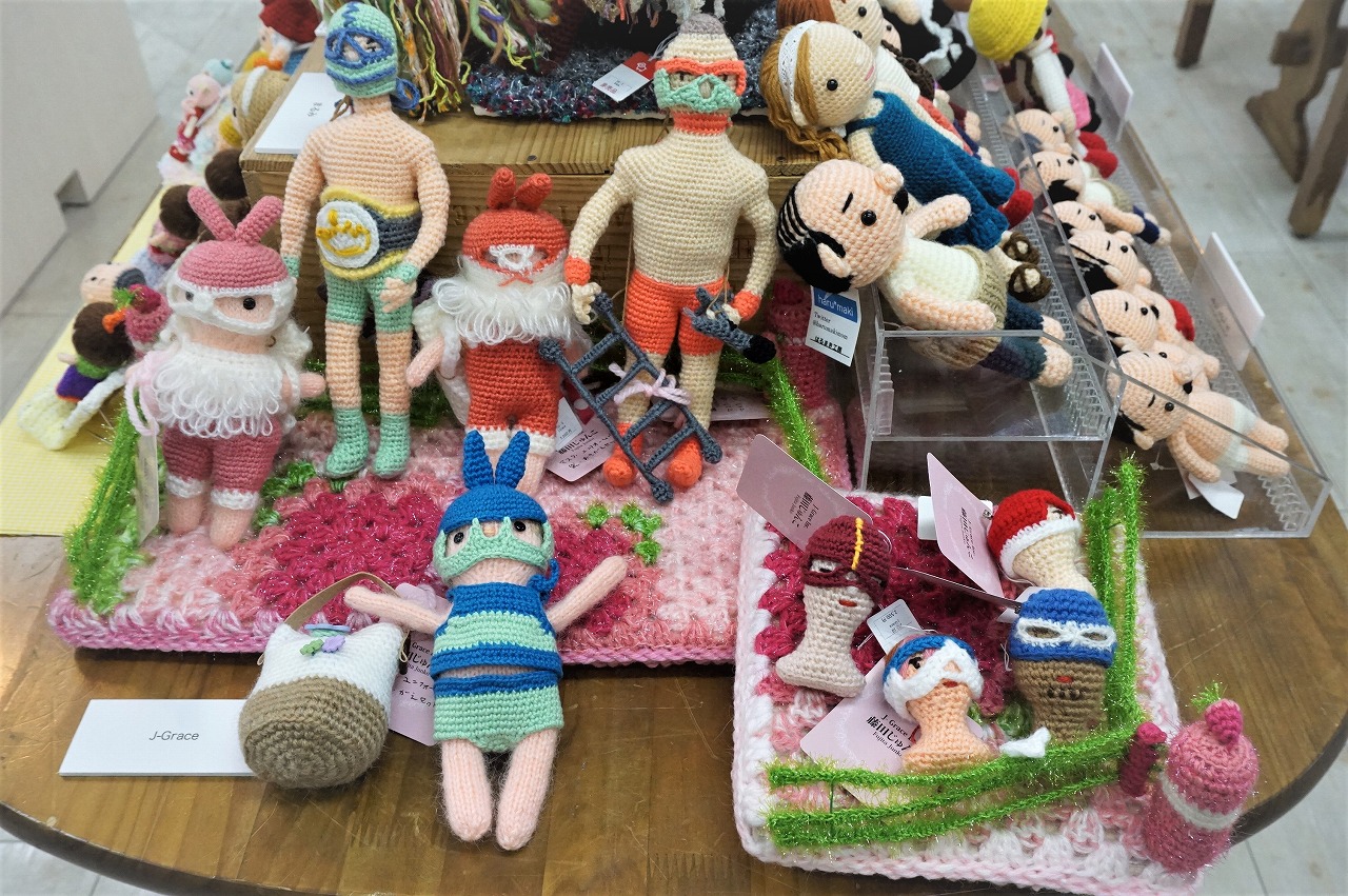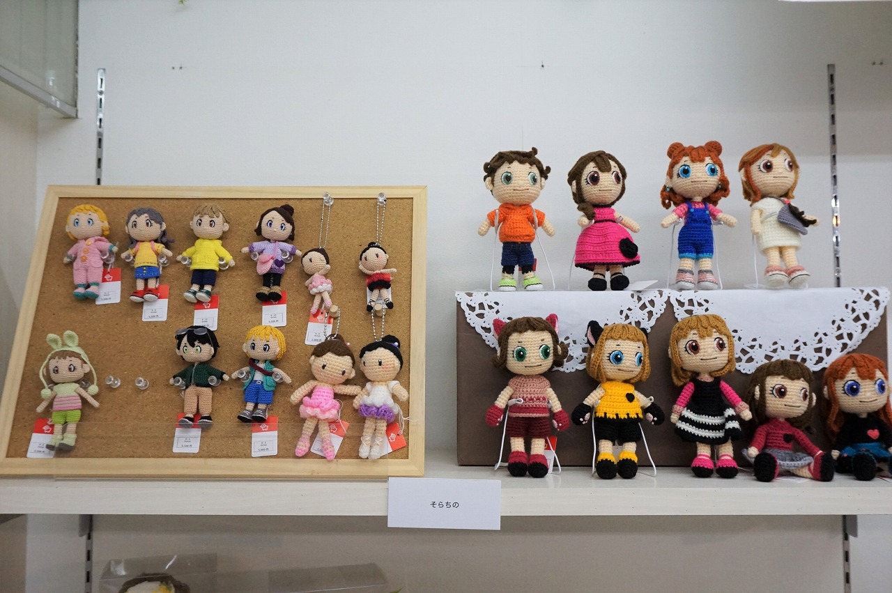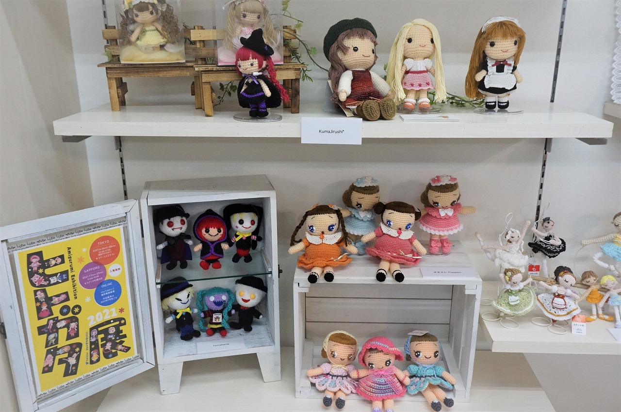 あみぐるみで手足を付けるのは細かい作業で大変だと思いますが、靴や靴下、手袋やアクセサリーが付いたりと細部にこだわりを感じますっっ!もちろん髪型や服装、ヒトガタの持つポーズ等も1つ1つ違いがあります。