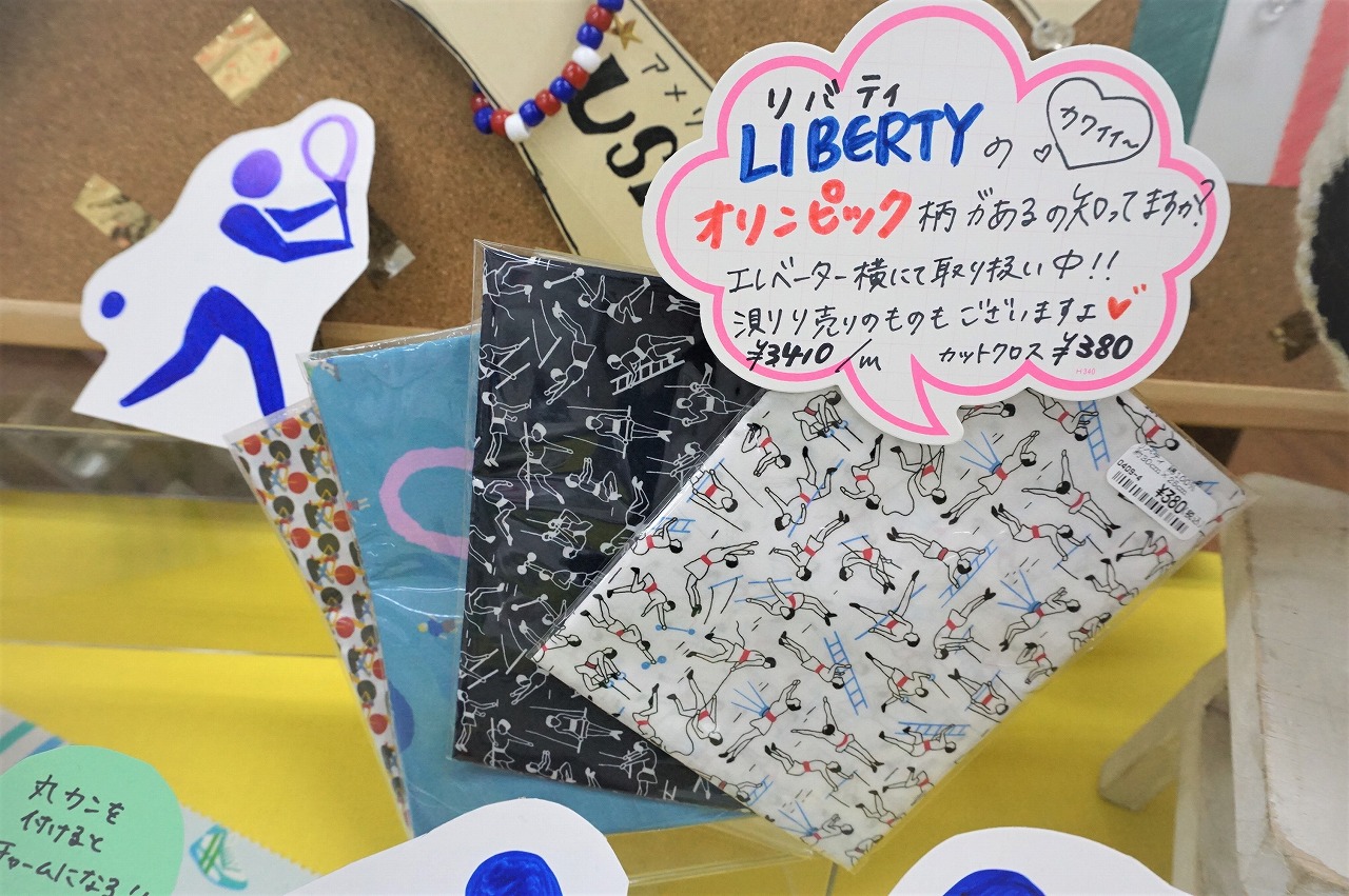 リバティプリントの中にはオリンピック柄があるのです!とても躍動感にみちている柄ばかりでマスクや小物作りにおすすめです。