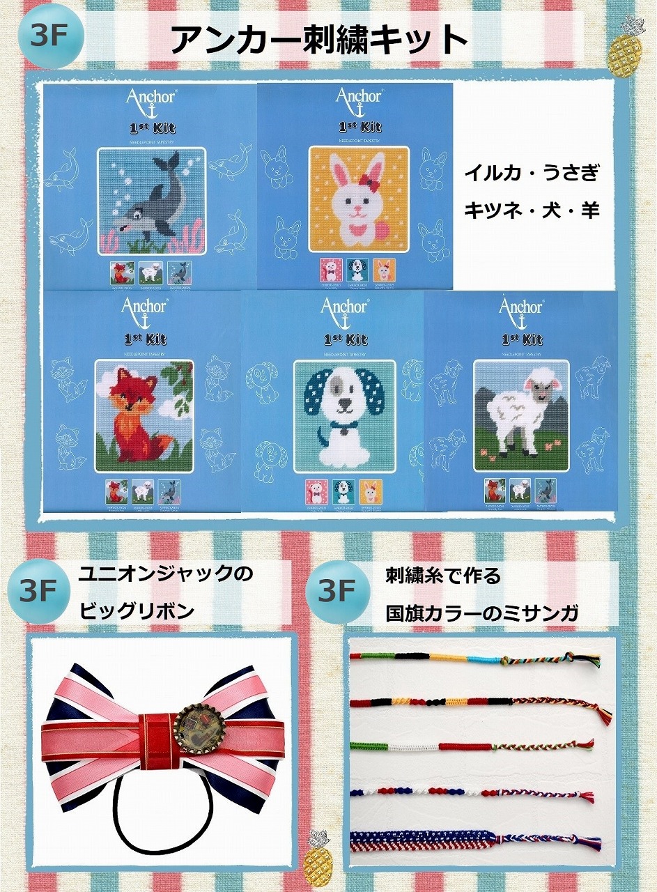 ■アンカー刺繍キット・ユニオンジャックのビッグリボン・刺繍糸で作る国旗カラーのミサンガ