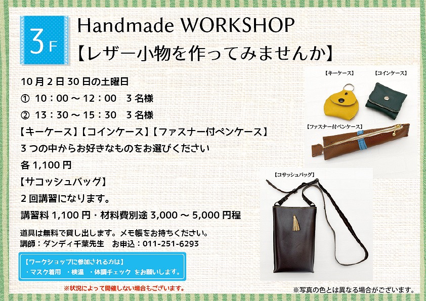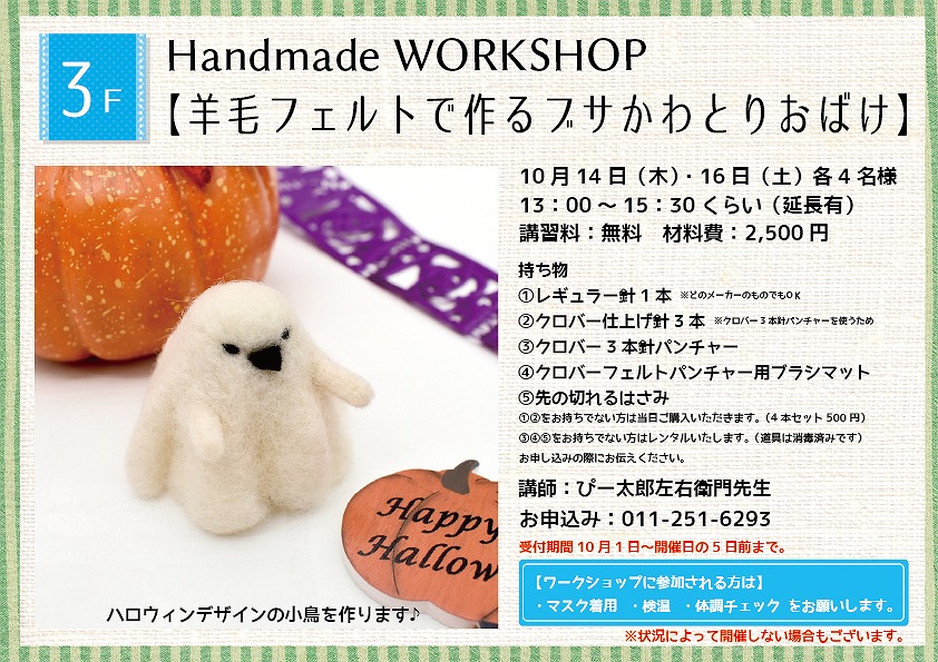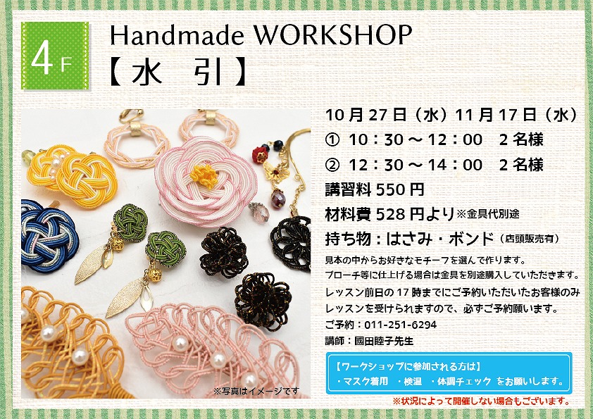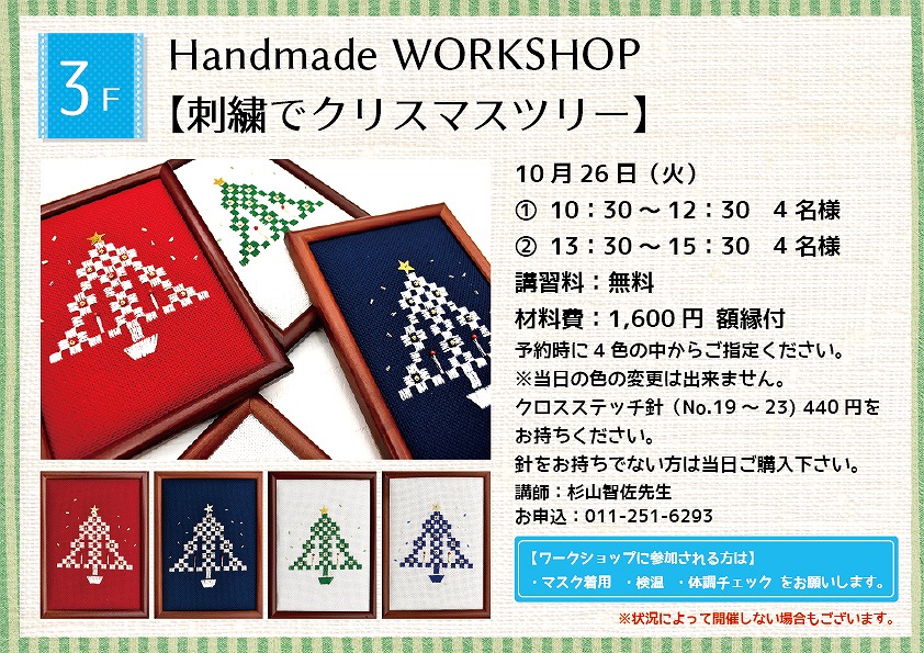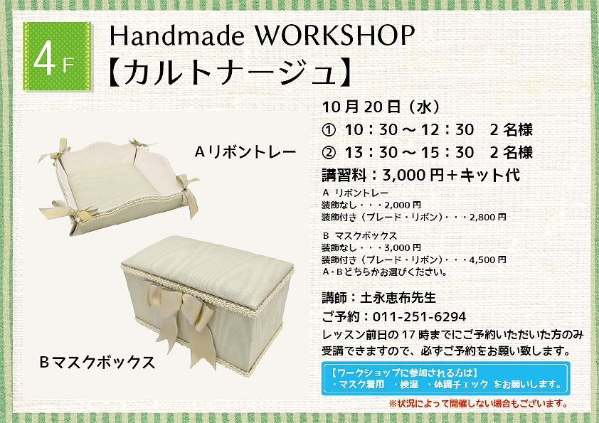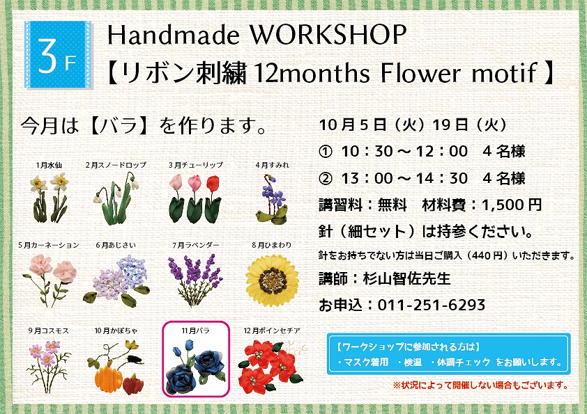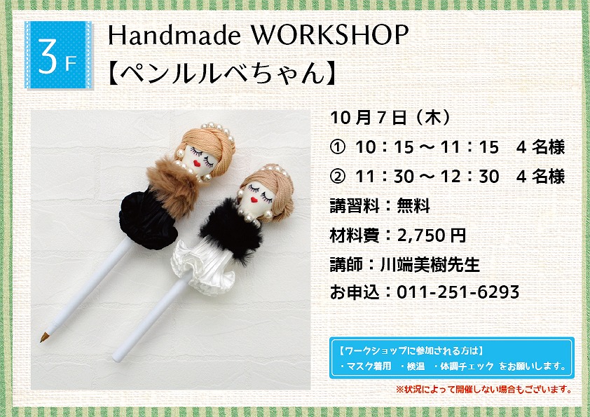 | 【ワークショップに参加される方は】 ・マスク着用 ・検温 ・体調チェック ・予約時にお名前・連絡先をうかがいます。 |