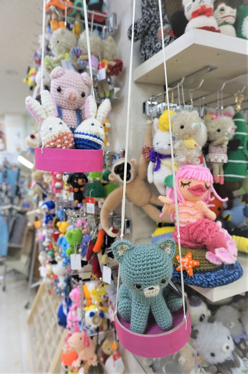 今年度は写真以外にも増えたり入れ替えの可能性がありますが、ブランコに乗ったあみぐるみ達が多くて会場の中を楽しんでいる様子♪ブランコディスプレイは要チェックです!