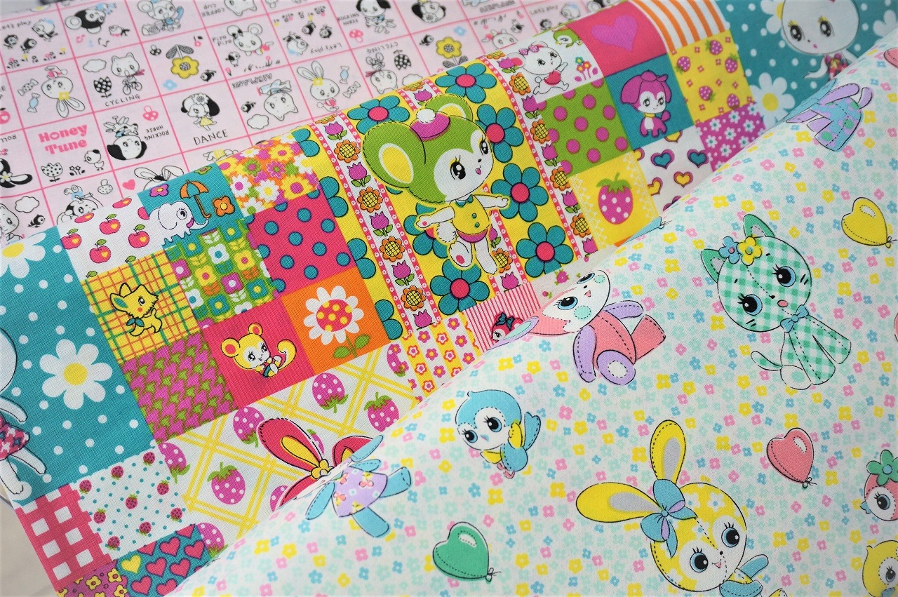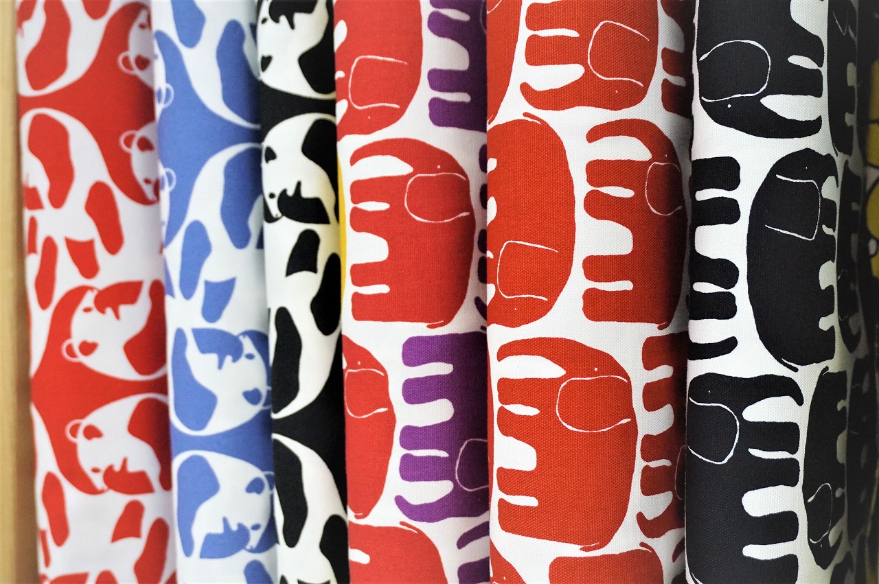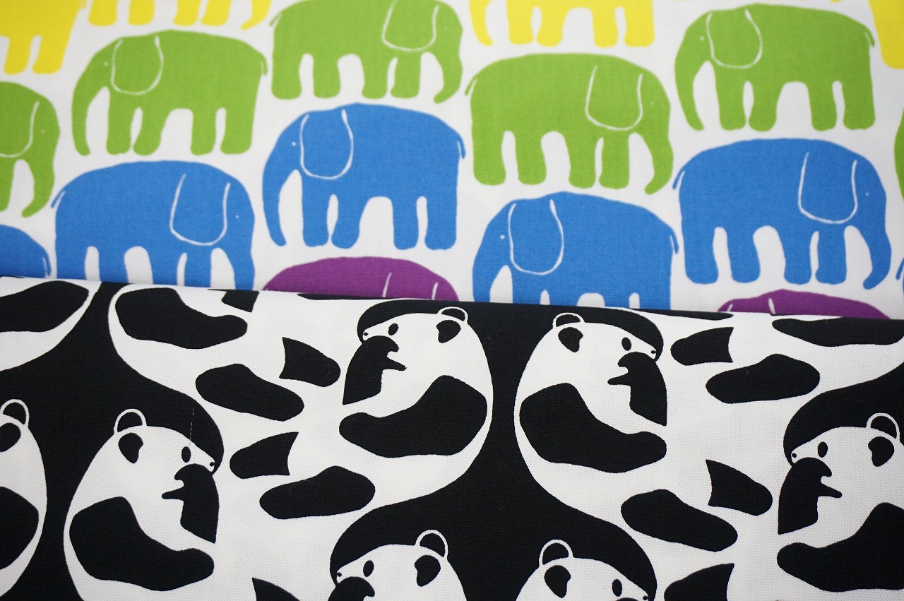 レトロでポップなかわいいプリントです。年齢問わず大人気!!どの生地もカラフルでどこか懐かしさを感じるロマンチックな動物達が可愛い柄が揃っているので、親子でおそろいのアイテムを作ったり入園入学におすすめです。