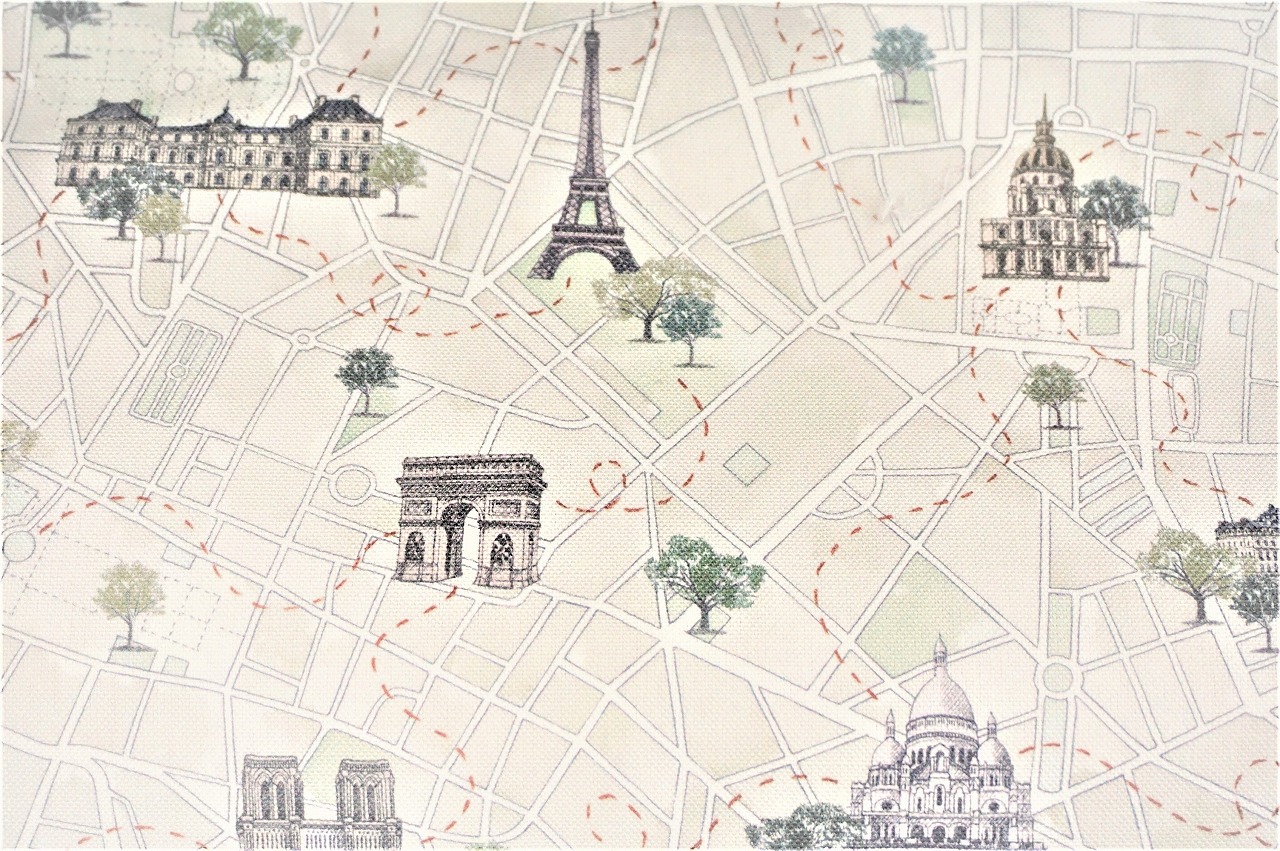 パリの主要観光名所がマップ上に描かれた、鉛筆タッチが優しい柄になります。凱旋門やエッフェル塔等パリ好きの方にはたまらない柄です!