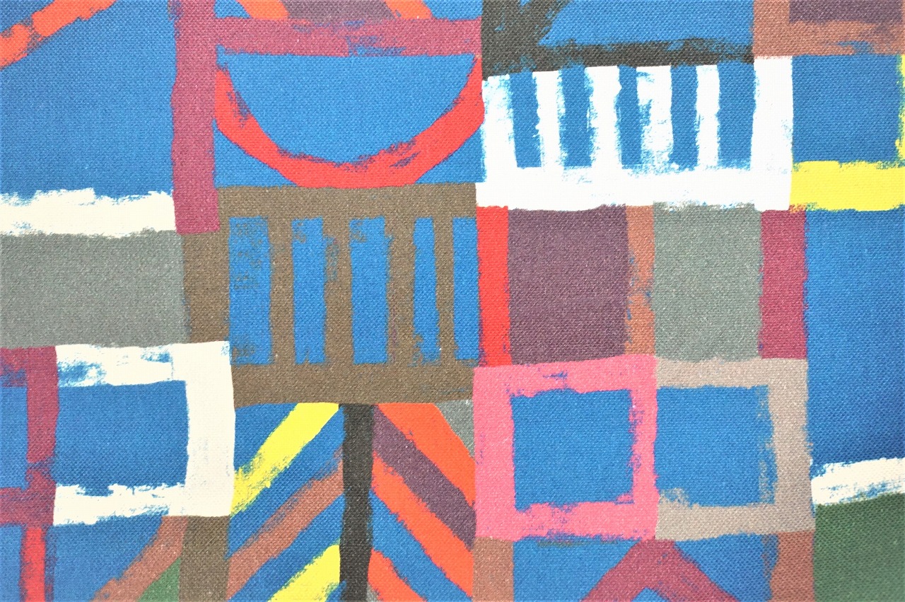 まるで木材のような幾何学模様が印象的でモダンな柄です。ダイナミックでカラフルなのでインテリアにぴったりです。