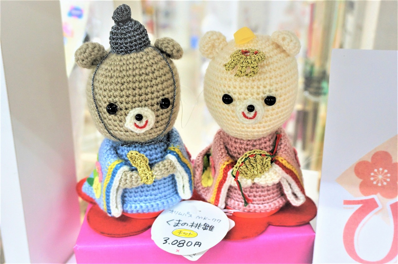 2月が始まったばかりですが、カナリヤ本店4階では「ひなまつり」向けのあみぐるみキットが入荷中!