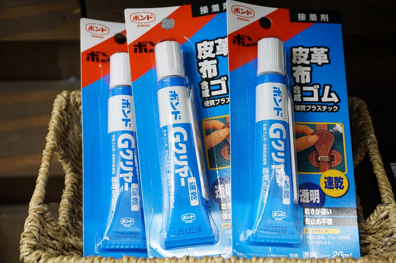 無色透明で速乾性のあるボンドです。接面の両面にヘラで塗り、手にべとつかない程度まで乾かして貼り合わせローラーなどで押さえ圧着します。レザークラフト時の接着や、バッグ、靴の補修などにお使い頂けます。※貴金属には接着できませんのでご注意ください。