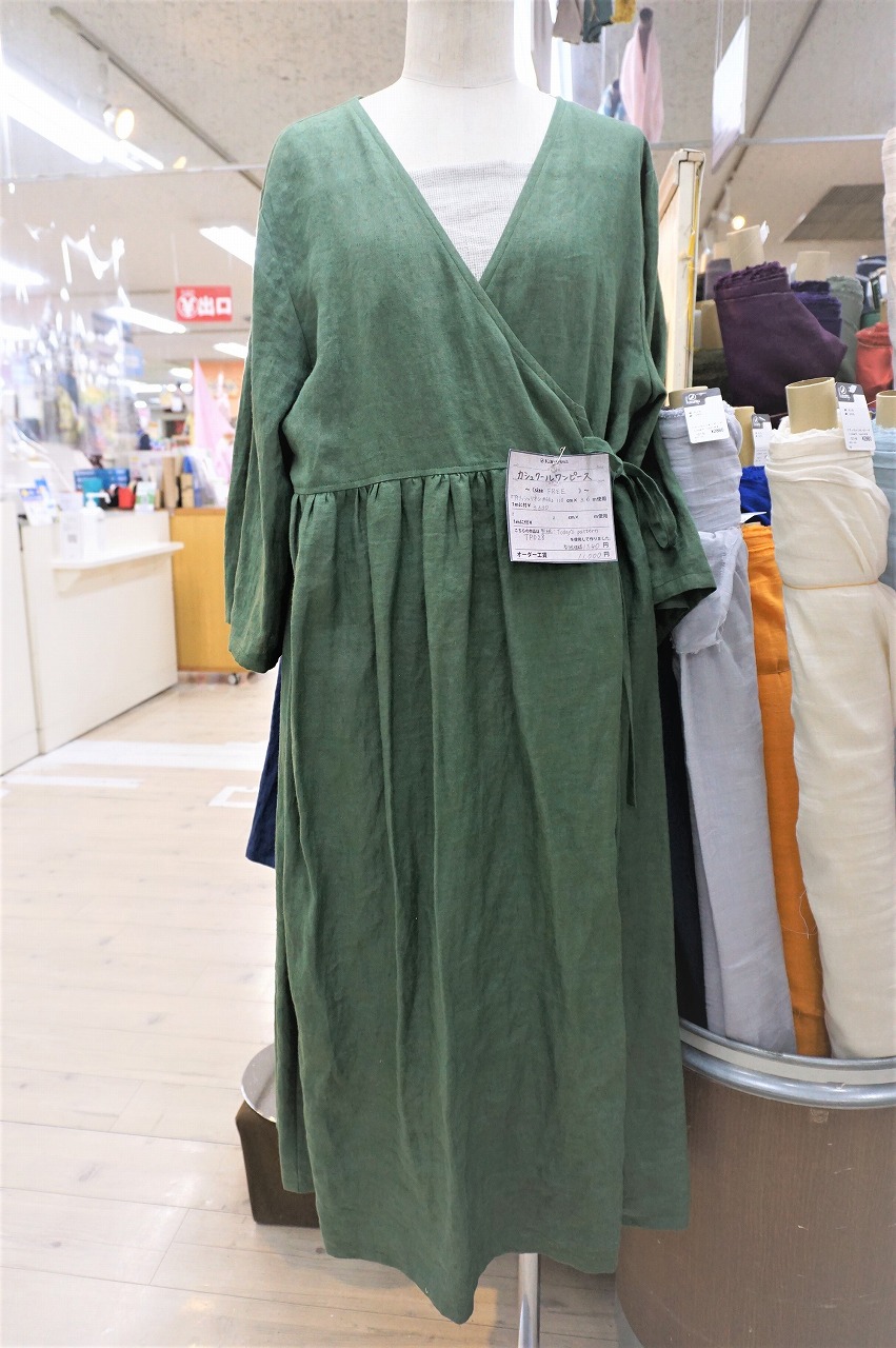 こちらは「アイリッシュリネン」を使った見本のワンピースになります。濃い色合いのリネン生地を使うと上品に仕上がります♪