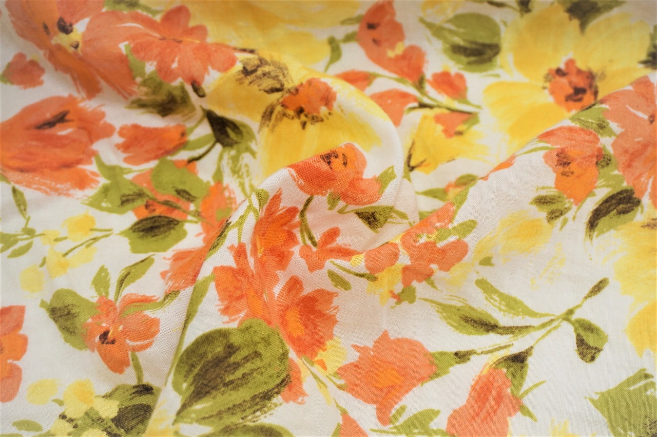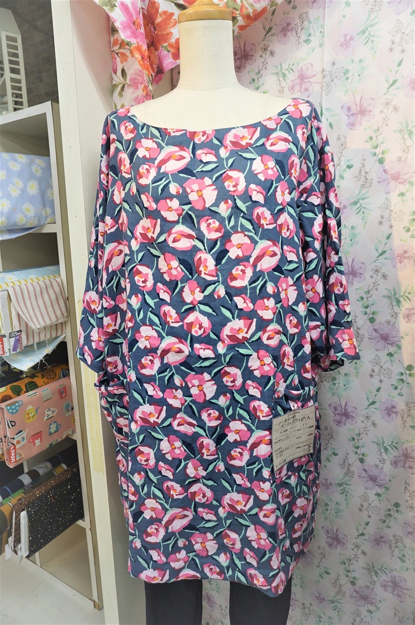 こちらはリネンタンブラープリントを使用した花柄ワンピースになります。柄があるだけで明るいです!ワンピースの他にもチュニックやスカート、ストールを作られてもおしゃれに仕上がります。