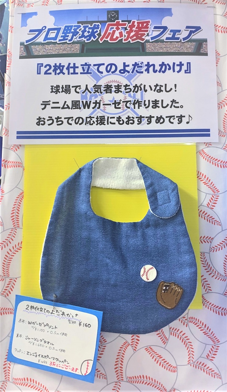 型紙とお気に入りカラーの生地を使って推しの選手や球団を応援して元気に盛り上げましょう!!