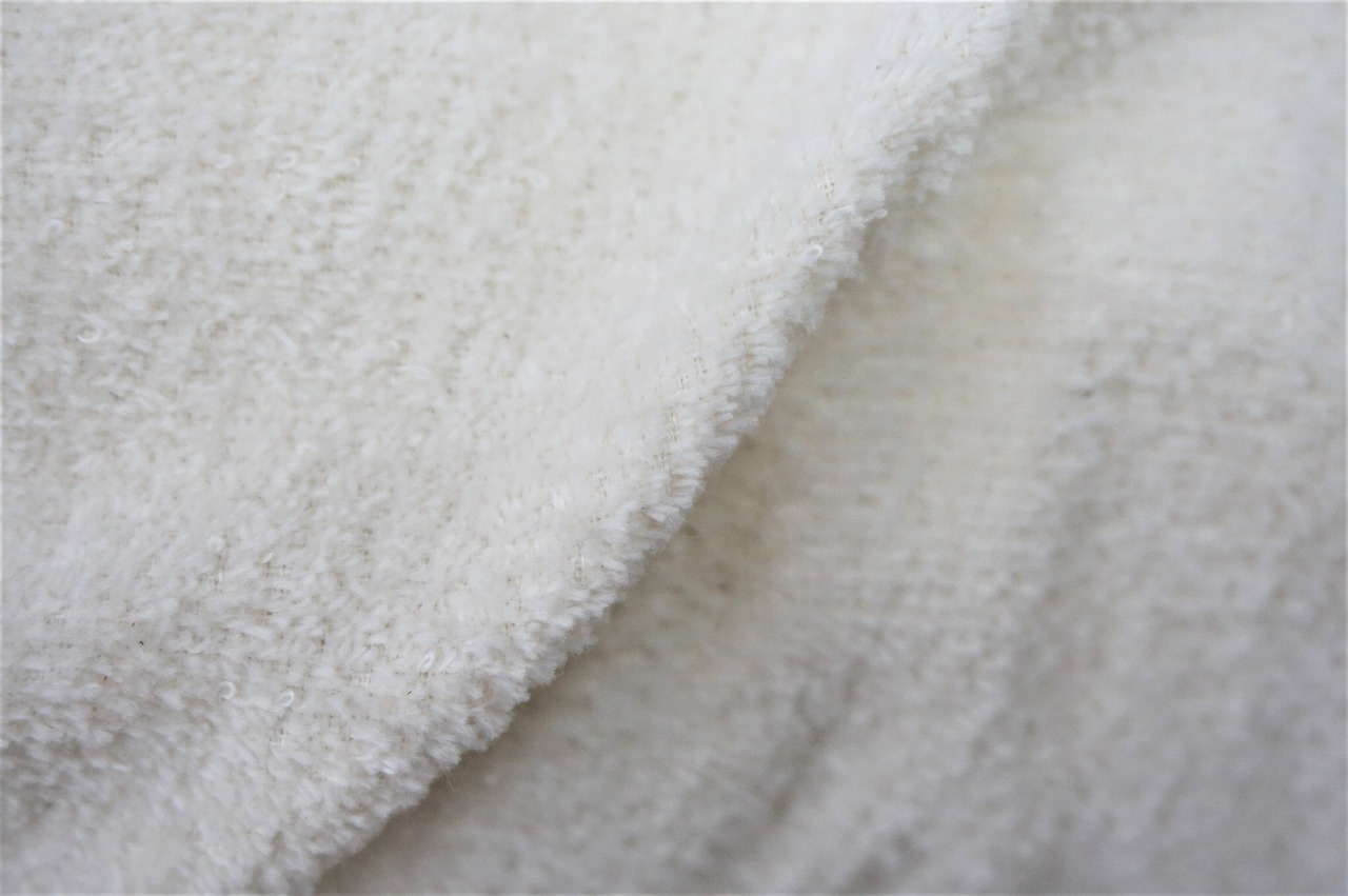 ふわっと柔らかさのある、糸がフープ状になったタオル生地です。吸水性・保温性ともに優れ使いやすいのでデリケートな赤ちゃんにもお使い頂ける優しい肌触りです。