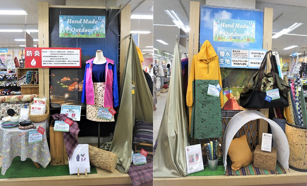 カナリヤ本店2階では夏のレジャーに本格的に大活躍できそうな「防炎生地」と「撥水生地」が揃っています。