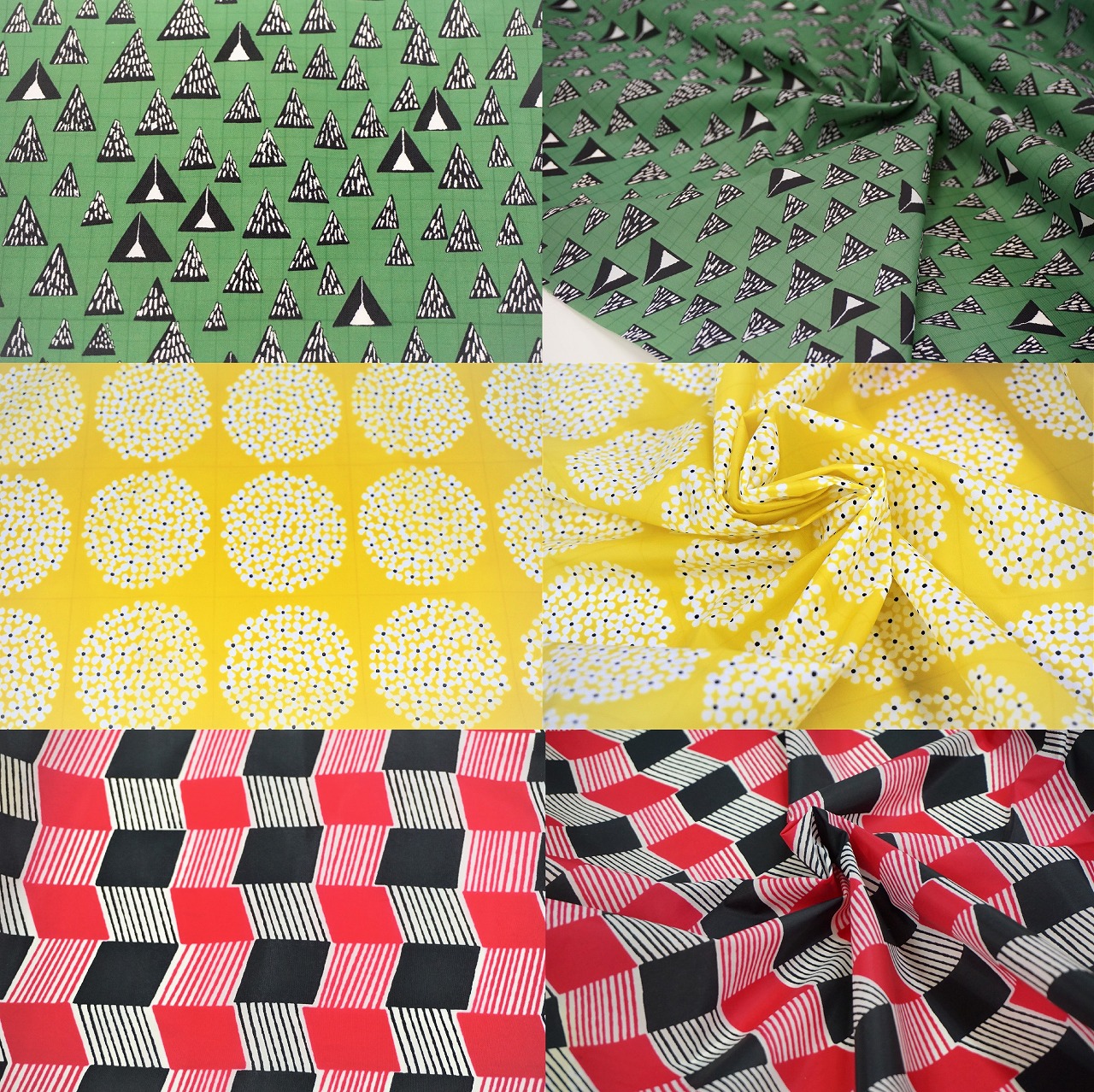 ●ナイロンンプリント・・・撥水効果があり摩擦に強く丈夫で軽いです。発色の綺麗な柄が揃っています。ポンチョ、合羽、パーカー等などのアウターの他、通常ではエコバッグにおすすめです。