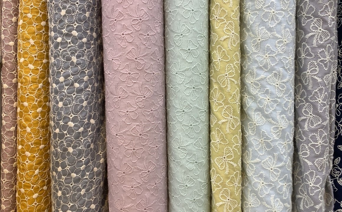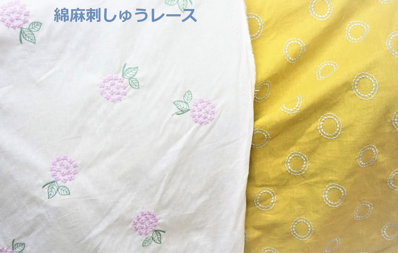 綿や綿麻タイプのものが多く、繊細な刺しゅうをお楽しみ頂けるので、この夏は手作りで何か作ってみてはいかがでしょうか。