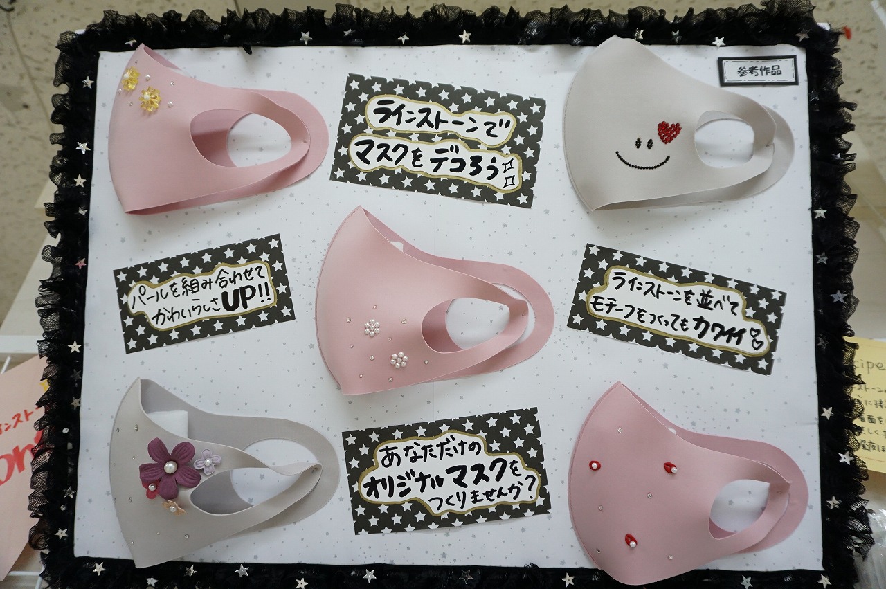 デコマスクとしてプレシオサラインストーンを使うのもおすすめです!見本ではウレタンマスクにデコしています。普段使い、というよりはイベントの時にマスクをおしゃれにしたい時にぴったりです。パールやお花ビーズと合わせて使うと可愛いです。