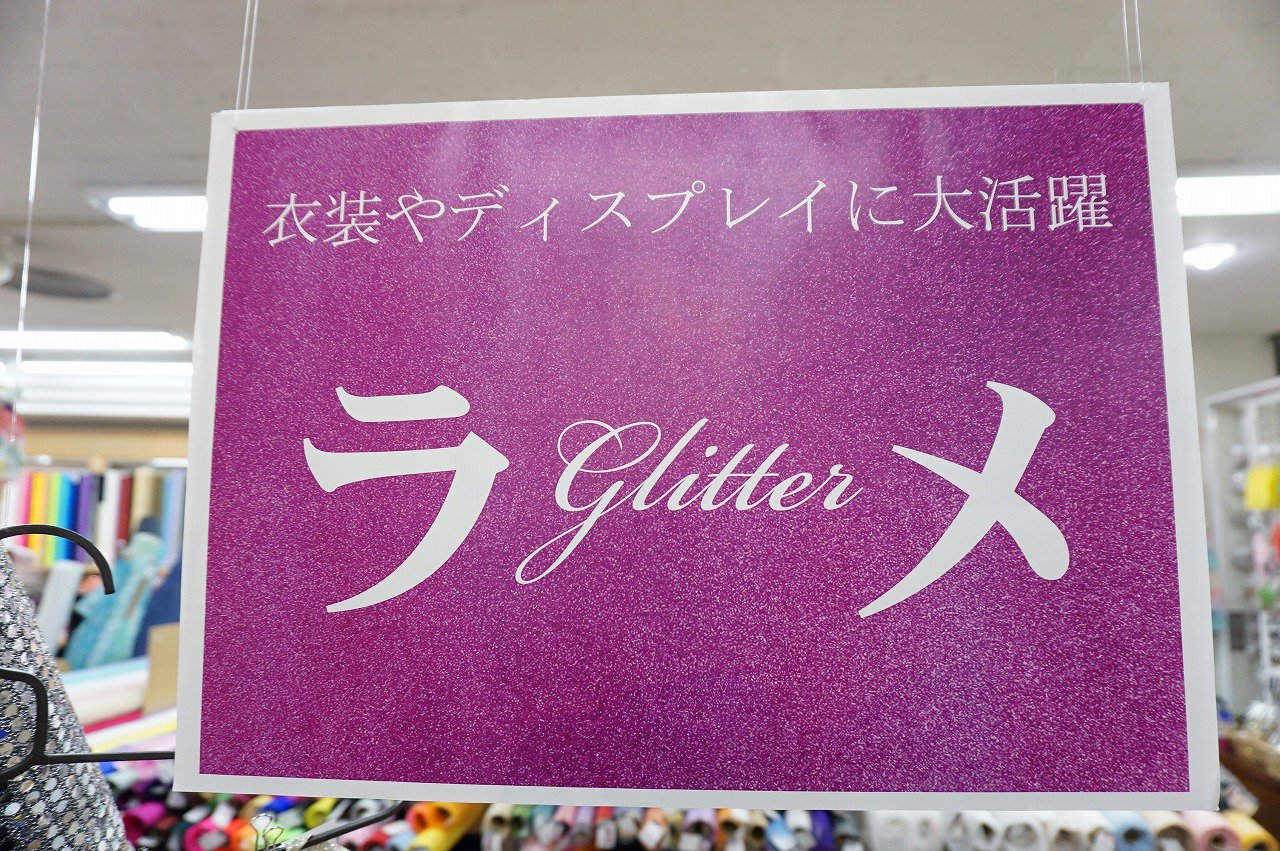 Wラメ一挙公開してみました!写真で見てもキラキラが伝わる程ラメがふんだんに使われていて綺麗な生地です!巾が広いので、ディスプレイ全般・学校祭・学習発表会などの衣装・小物作りにオススメです☆