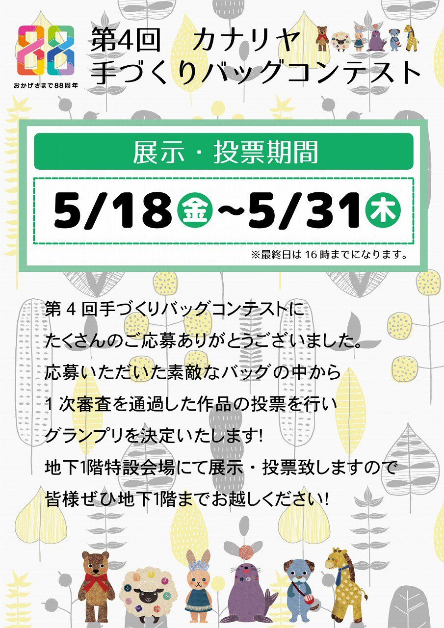 「第4回 カナリヤ 手づくりバッグコンテスト」の2次審査を開催中!!