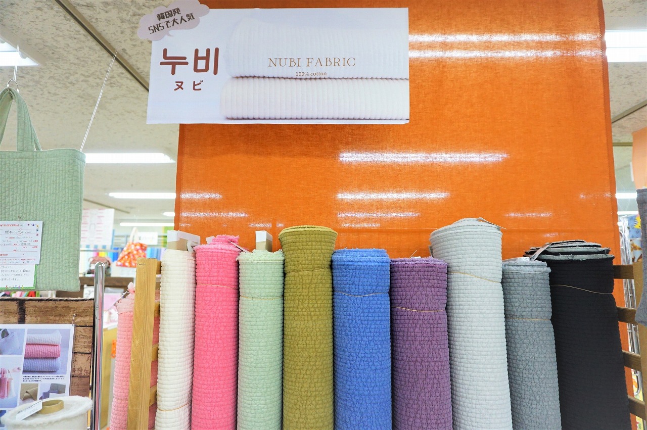 カナリヤ本店1階では只今SNSで注目されているキルト生地が発売中!