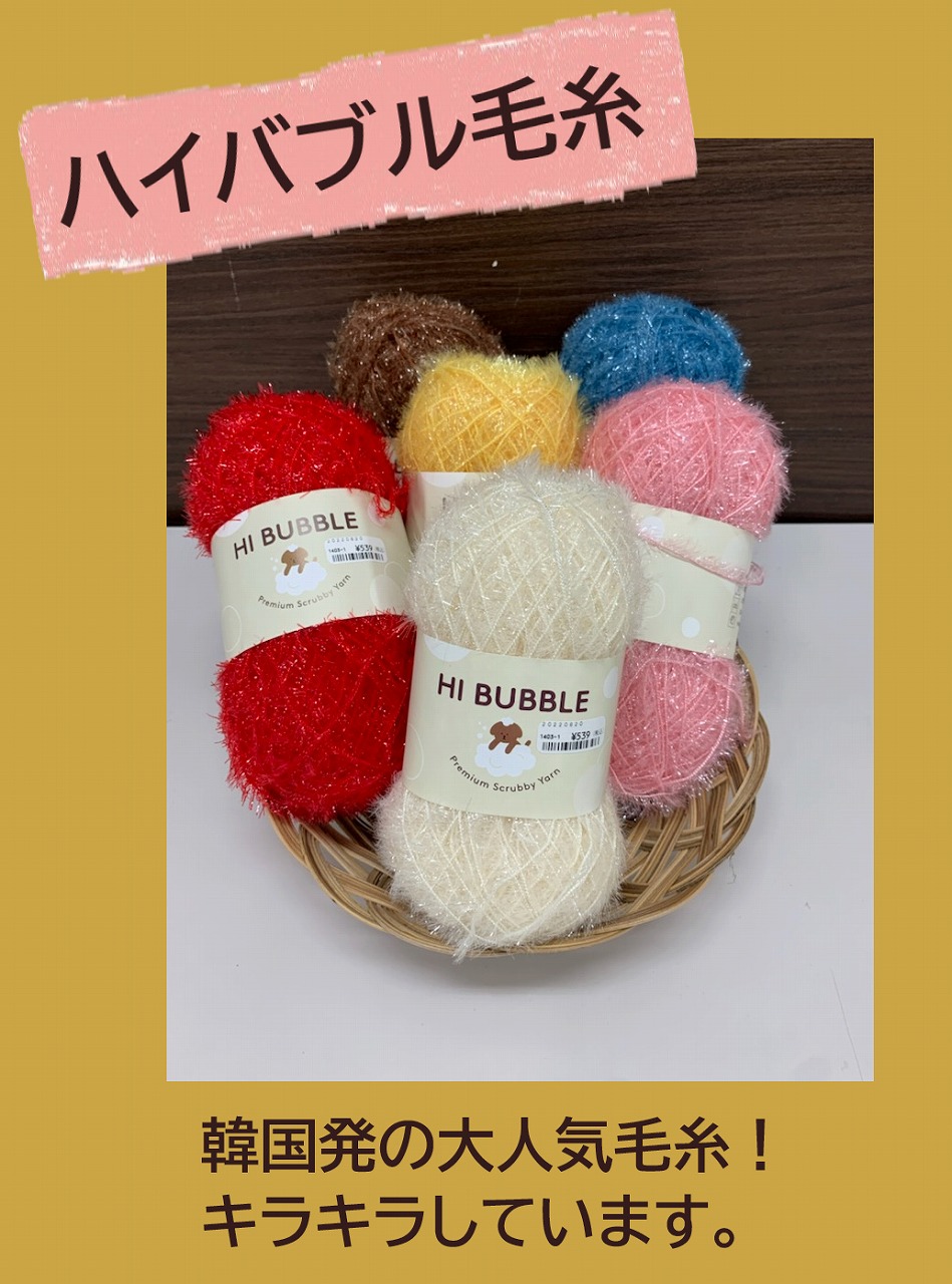 ハイバブルは韓国発のキラキラファンシーヤーンです。