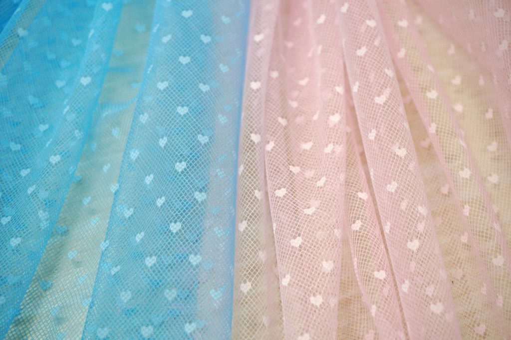 チュールスカートにぴったり!柔らかくてチクチクしない、チュールにハートやダイヤ柄が施され、可愛さを引き立てています。お洗濯もできて、色数豊富なので、お子様から大人カラーまで色選びも楽しく選んで頂けます。