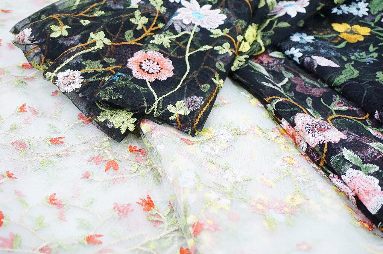 花柄刺しゅうレース 全6色・・・130cm巾 1m/2,980円