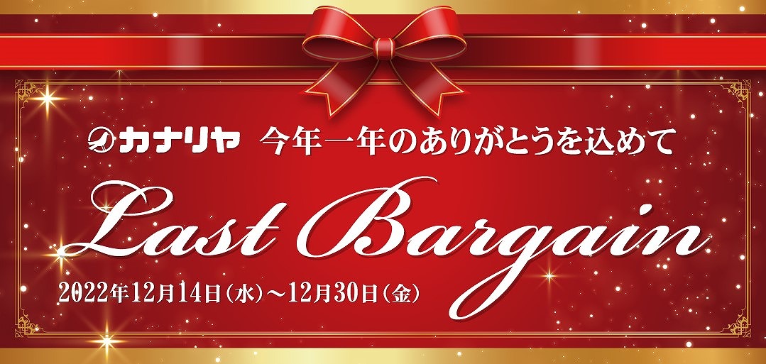 2022年12月14日(水)~12月30日(金)までの期間、カナリヤ全店にて、今年一年のありがとうを込めまして「ラストバーゲン」を開催いたします。 (現在終了)