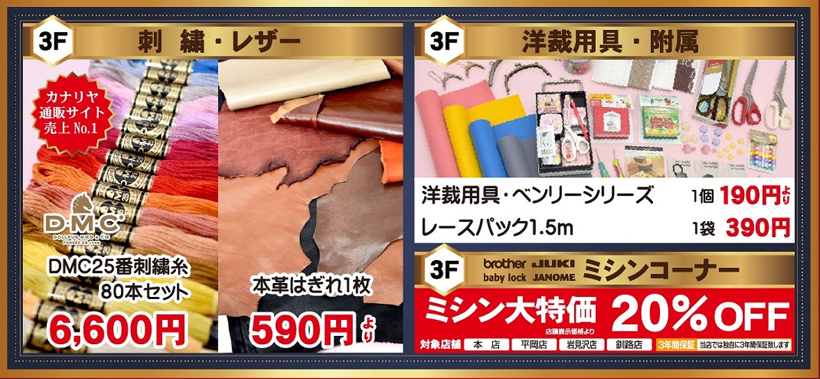 対象店舗:本店・平岡店・岩見沢店・釧路店
