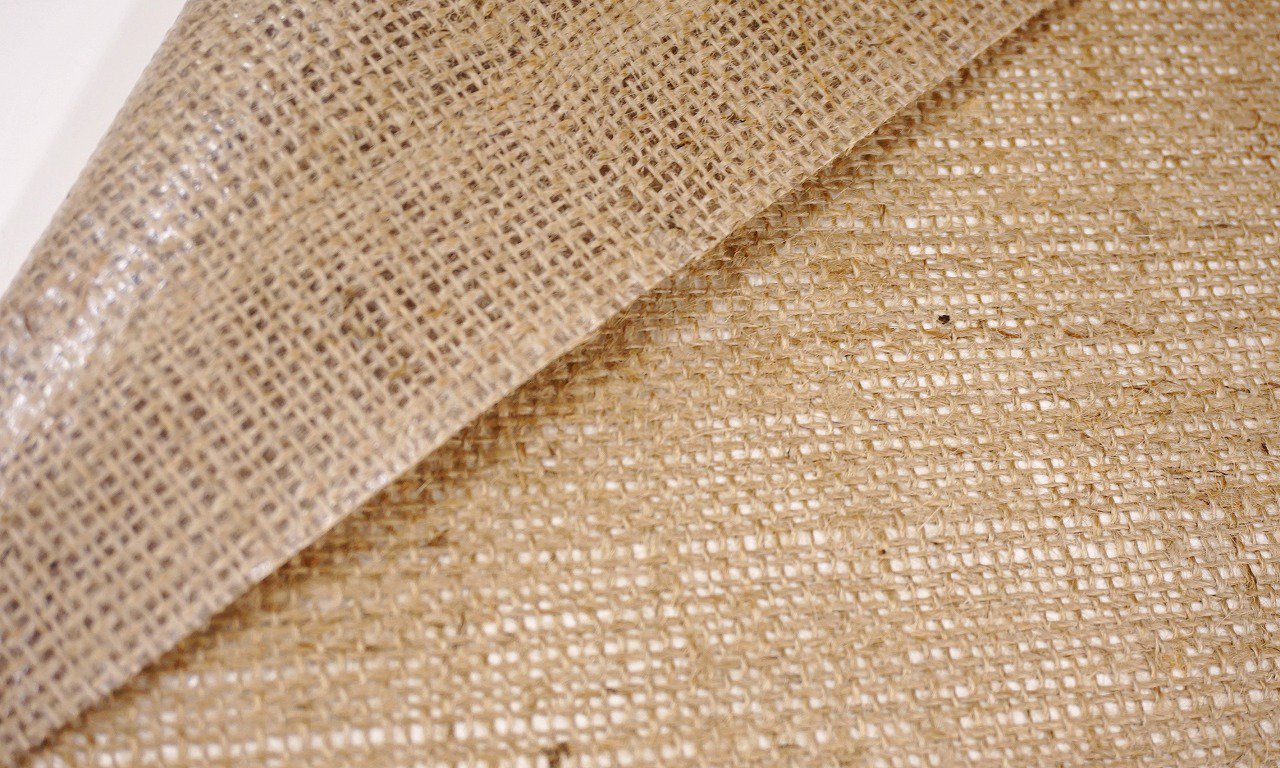 ジュート麻ラミネートは、麻部分とラミネートが一緒になった珍しい生地です。テーブルクロスや夏バッグにおすすめです。