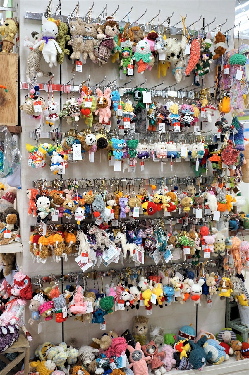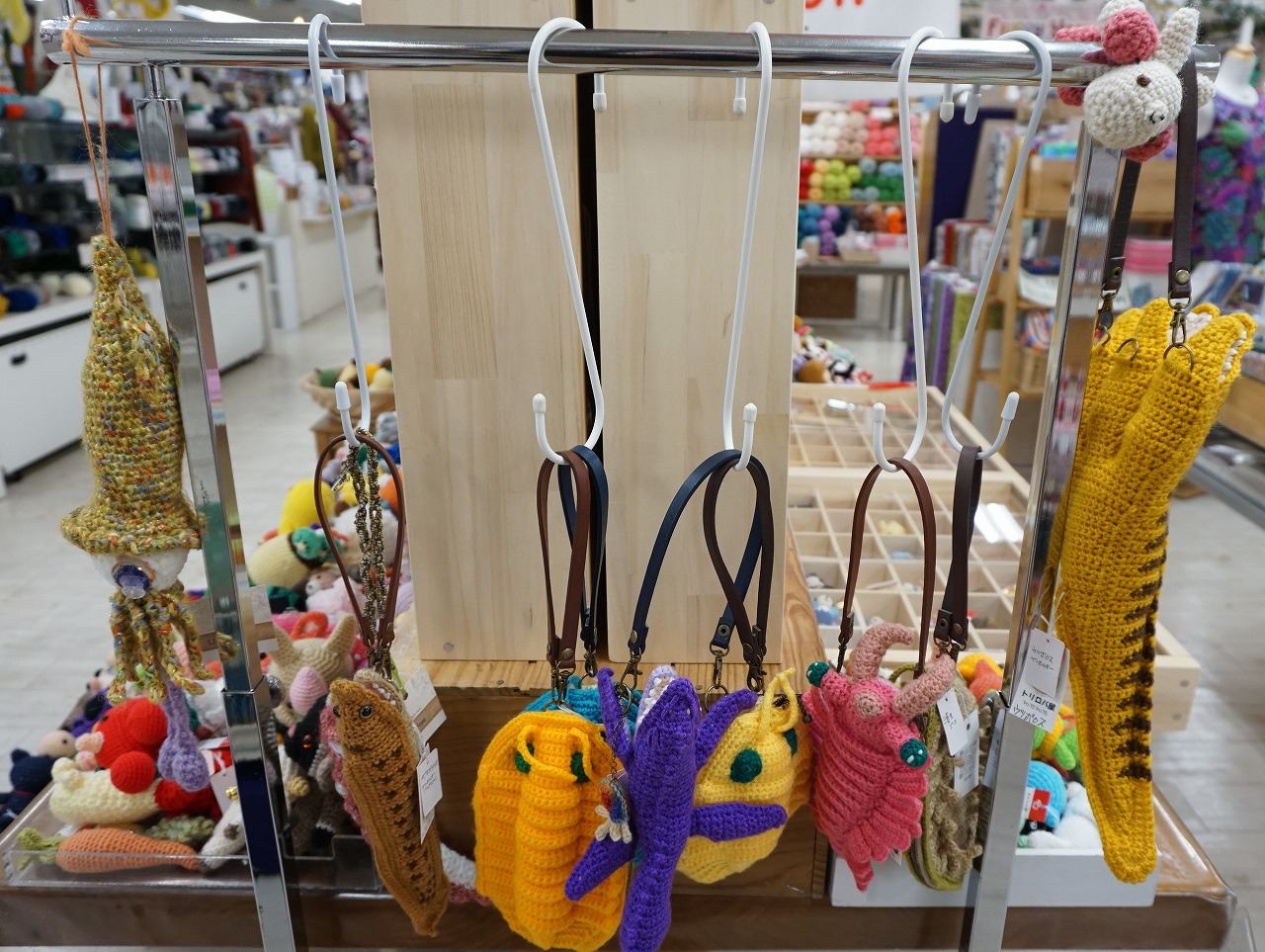 アニマルからヒトガタ、恐竜やカエル、中にはスイーツ、クラゲなどの海の生き物、石像モチーフや宇宙人!?珍しいあみぐるみ等、個性豊かで見応えバツグンにあります!!