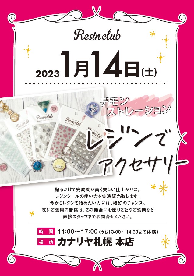 終了致しました。お越し下さった皆様、誠にありがとうございました!!UVレジンやレジンシール等はカナリヤ本店4階で取り扱っております。