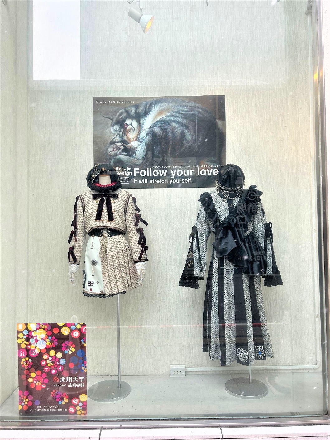 本店東口側3つのウィンドーになります。北翔大学より、ディスプレイして頂きました。