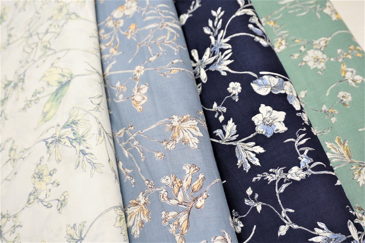 毎年人気の綿ローン。小花柄の生地が沢山あり、春夏服のブラウスやスカートなどに使いたくなる定番プリントでございます。