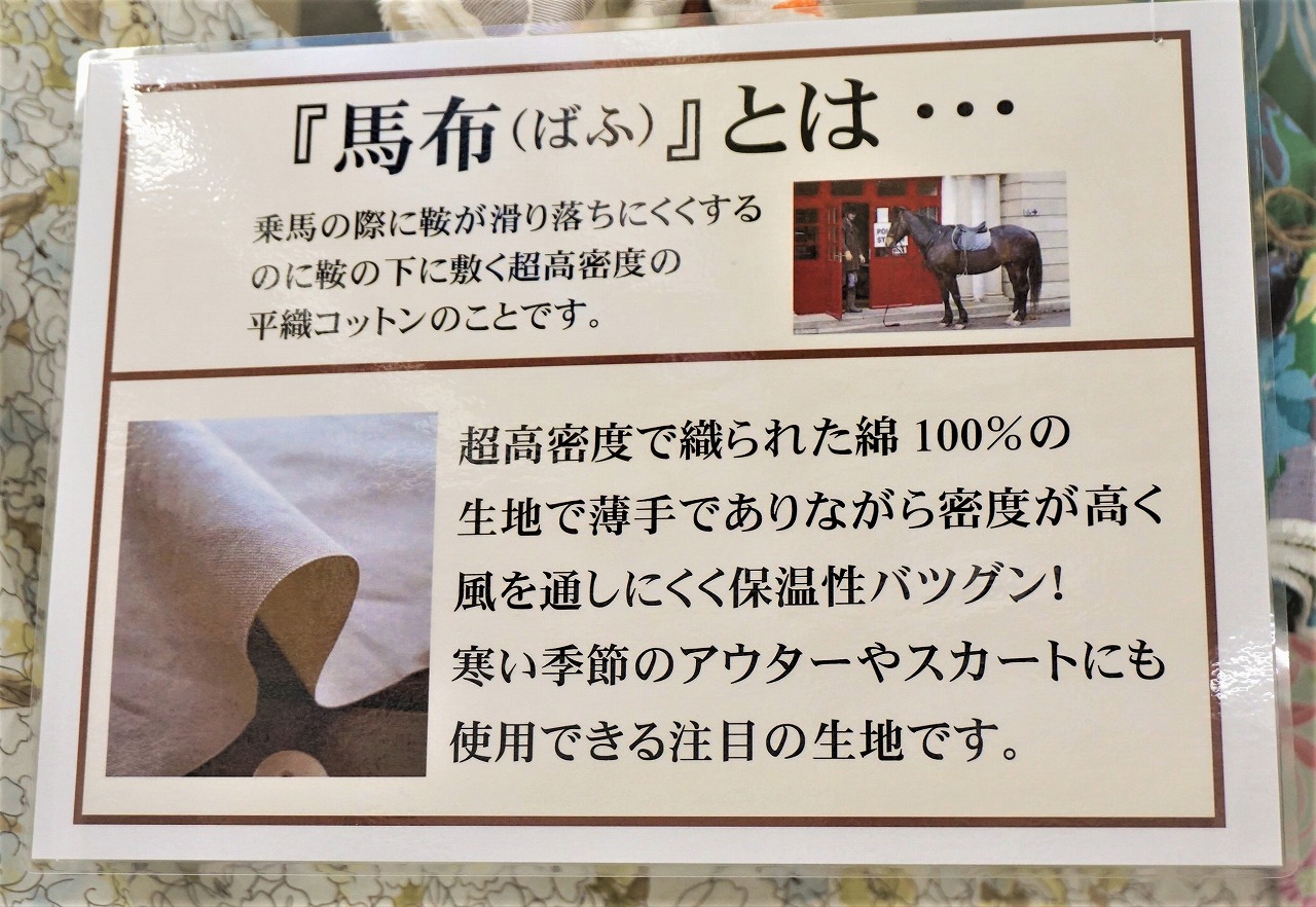 花柄などの柄生地の他にも今回ご紹介しました「馬布」のような高密度で季節の変わり目の時期に使える生地や、毎年人気のデニム地など、春に使える生地が入荷しています。
