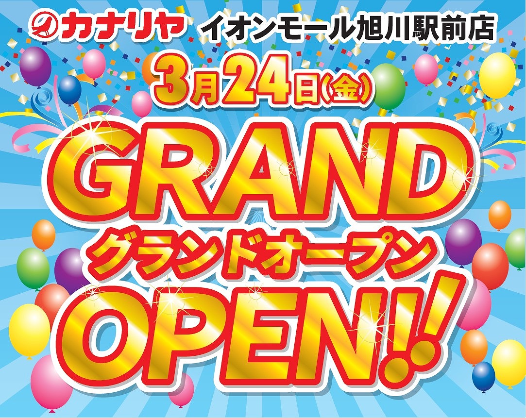 2023年3月24日(金)、イオンモール旭川駅前店3階に カナリヤ旭川店がいよいよGRAND OPEN(グランドオープン)致します!!