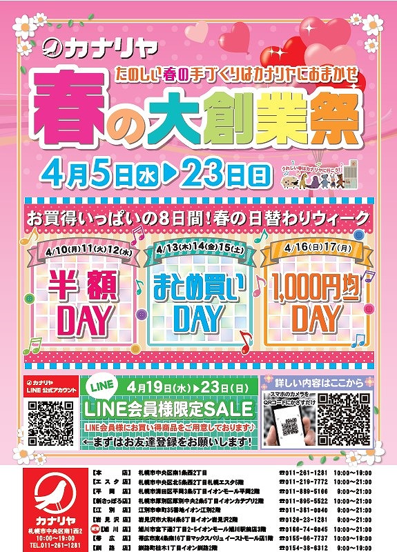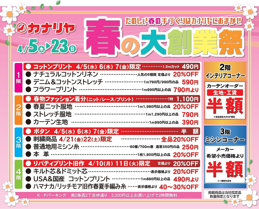 2023年4月5日(水)~4月23日(日)までの期間、カナリヤでは「春の大創業祭」を開催致します。