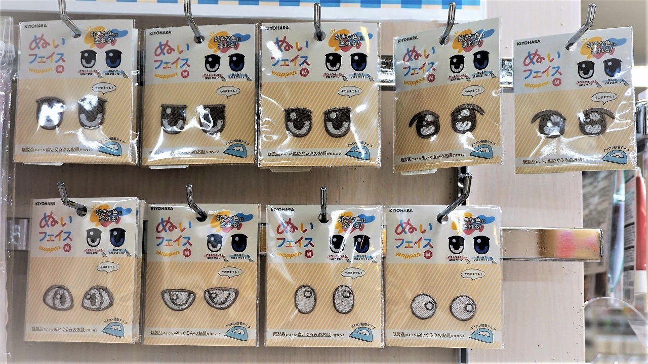 本店3階ではより推しぬいに使える細々としたアイテムが豊富に揃っていまして、ぬいクロス・目のワッペン+眉ワッペン、縫いボディなどを販売中!