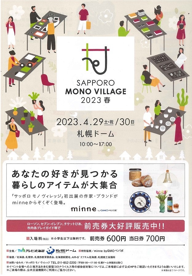 2023年4月29日(土)・30日(日)の2日間、札幌ドームで開催の「サッポロモノヴィレッジ2023春」にカナリヤからも参加いたします。(終了致しました。)