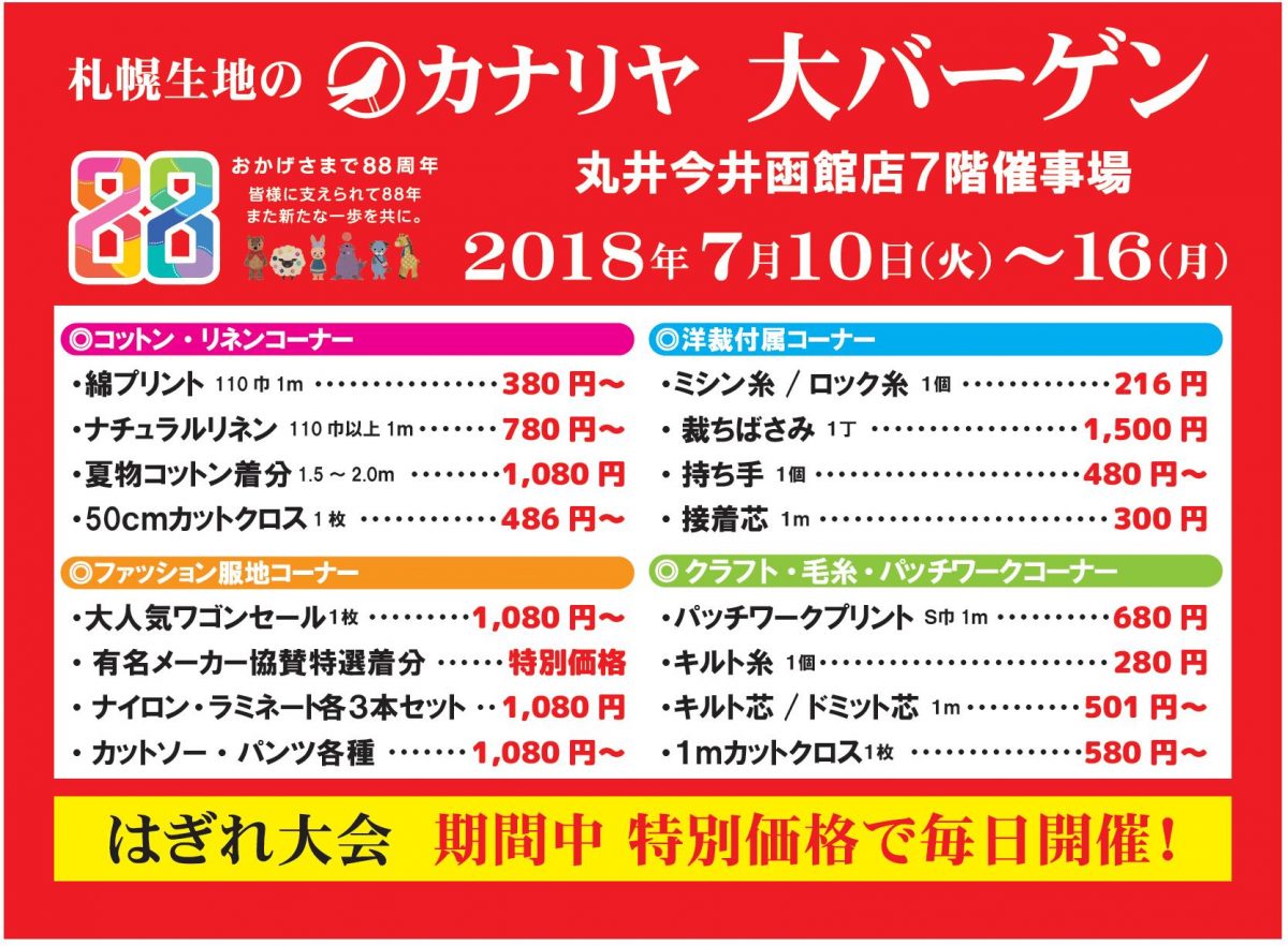 札幌生地の「カナリヤ バーゲン」 (終了致しました)