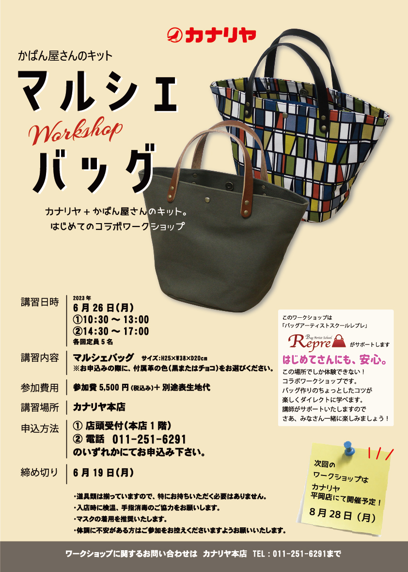 2023年6月26日(月)カナリヤ本店にて特別ワンデイレッスンマルシェバッグ」を開催致します。