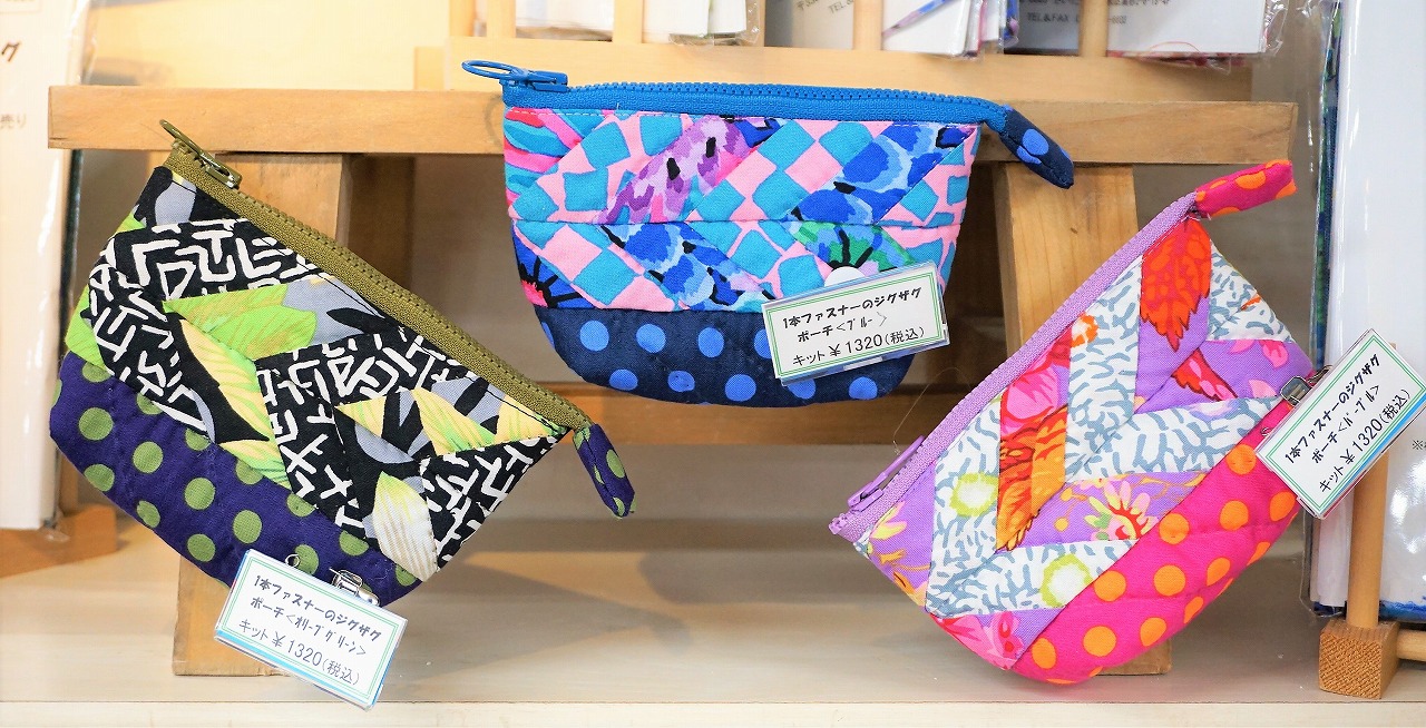 キットはブローチ、ポーチ、ぬいぐるみなどの小物から、キルトで作るタペストリー(見本有)・バッグ等(見本有)が揃っています!!