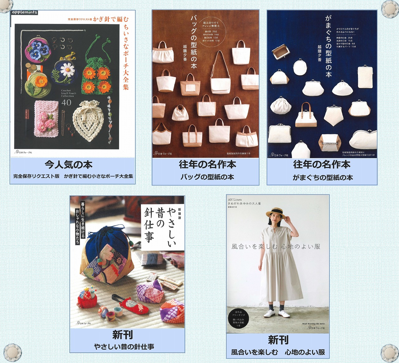 手芸を始めるにあたり、書籍は完成イメージを確認頂いたり作り方を見る事が出来るのが魅力ですよね★今回は過去に販売された素敵な作品満載の書籍を中心に集めたイベントを行います。過去の素敵な書籍から、現在人気のものまでご紹介いたします。