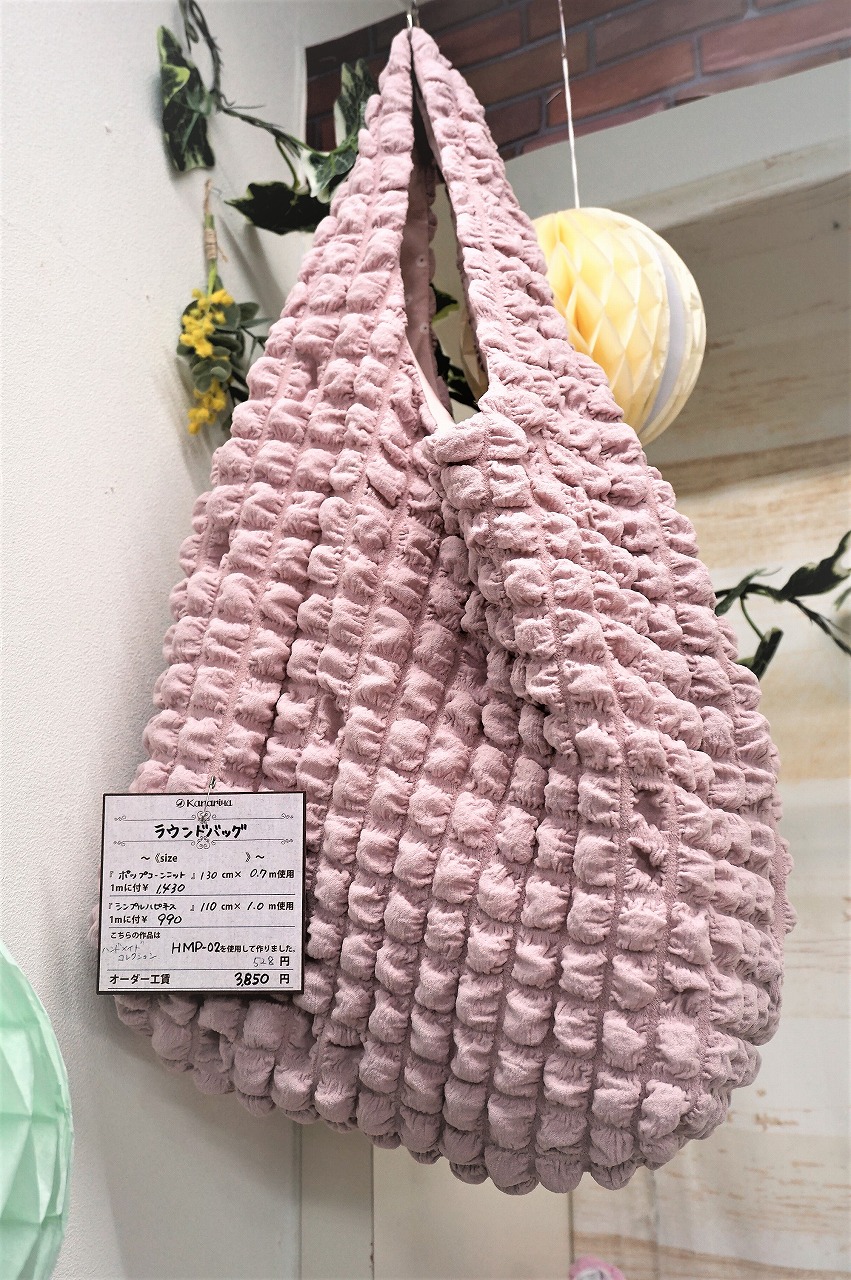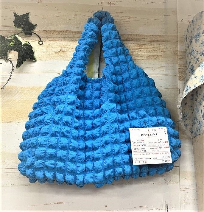 ポコポコとした表面ですが、持ってみると軽く見た目が可愛いのでバッグやブラウス、トップスの袖に取り入れてみるのをおすすめします!